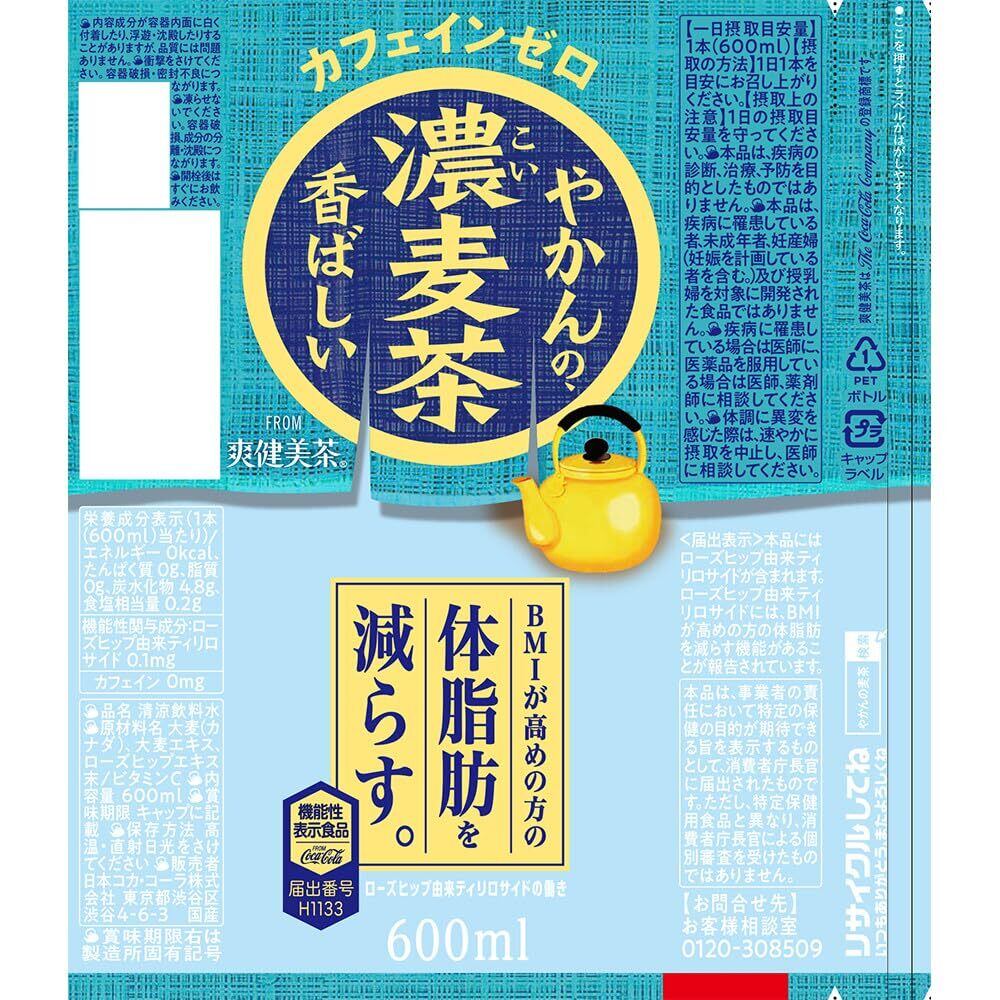 【2022最新】PET ×24本 600ml 爽健美茶 from [ノンカフェイン] やかんの濃麦茶 [機能性表示食品]コカ・コーラ