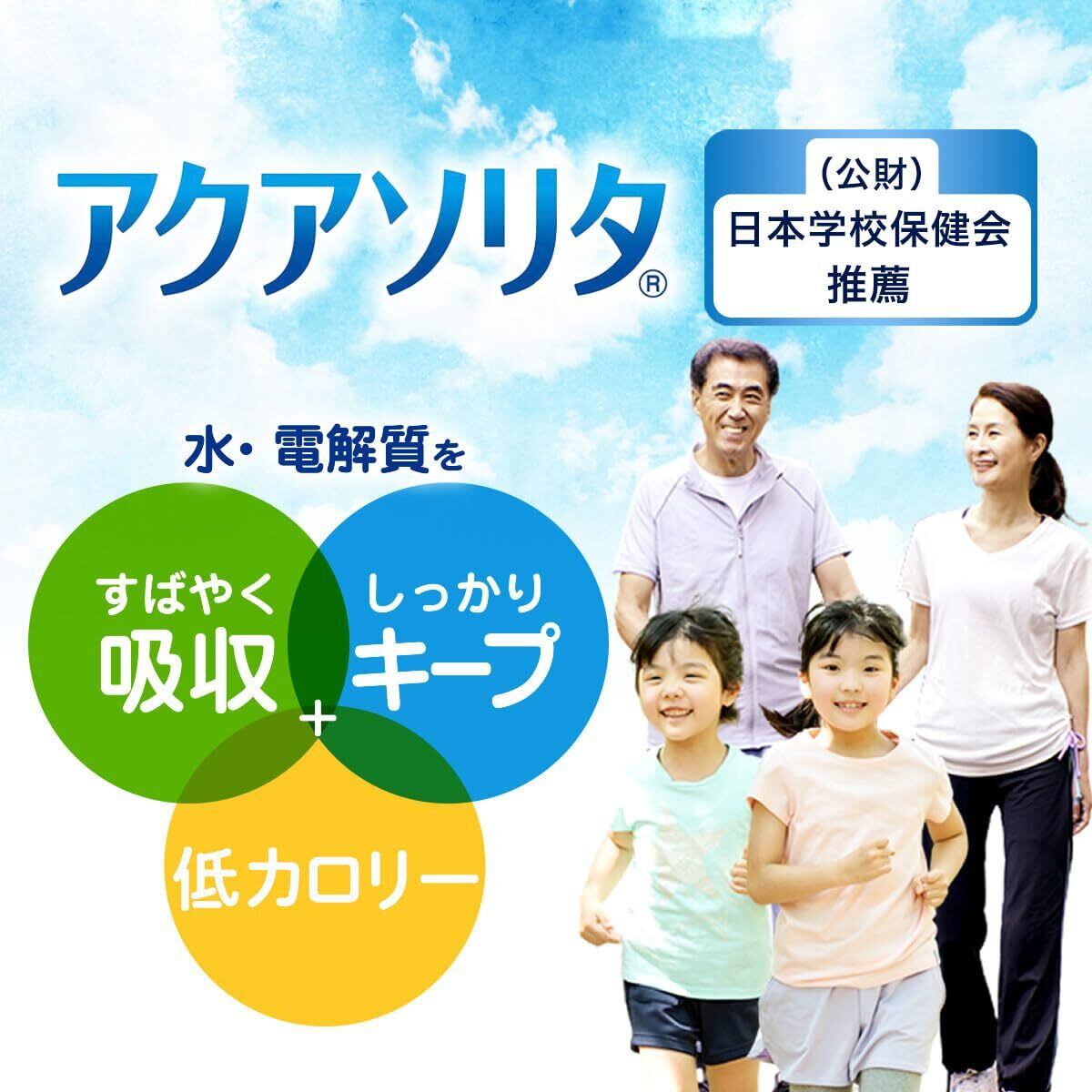 水分と電解質(ナトリウム、カリウム、カルシウムなど)が手軽に補給できる経口補水ゼリーです。体内への吸収が速く、かつ保持されやすい組成で、暑い時期や乾燥する時期を始め、さまざまな場面において、“体内の水分"の補給に適しています。おいしいゆず風味で、小児から高齢者まで幅広い年代でご使用いただけます。かまなくてよい固さのゼリータイプです。栄養成分【標準栄養成分(1袋130g当たり)】エネルギー19kcal、たんぱく質0g、脂質0g、炭水化物5.2g、-糖質4.5g、--糖類2.4g、-食物繊維0.7g、食塩相当量0.3g、カリウム100mg、カルシウム13mg、マグネシウム4.7mg、リン20mg(食物繊維は推定値)アレルギー物質―使用上の注意容器のフチの取扱にご注意ください。「アクアソリタ」は清涼飲料水です。特別用途食品(病者用食品)ではありません。生後、3か月以降の乳児からお飲みいただけます。栄養補給の妨げにならないようご留意ください。一般のイオン飲料より電解質の濃度が高くなっているため、ナトリウム、カリウム等の摂取制限がある方は、飲用に際して医師、薬剤師等の専門家にご相談ください。