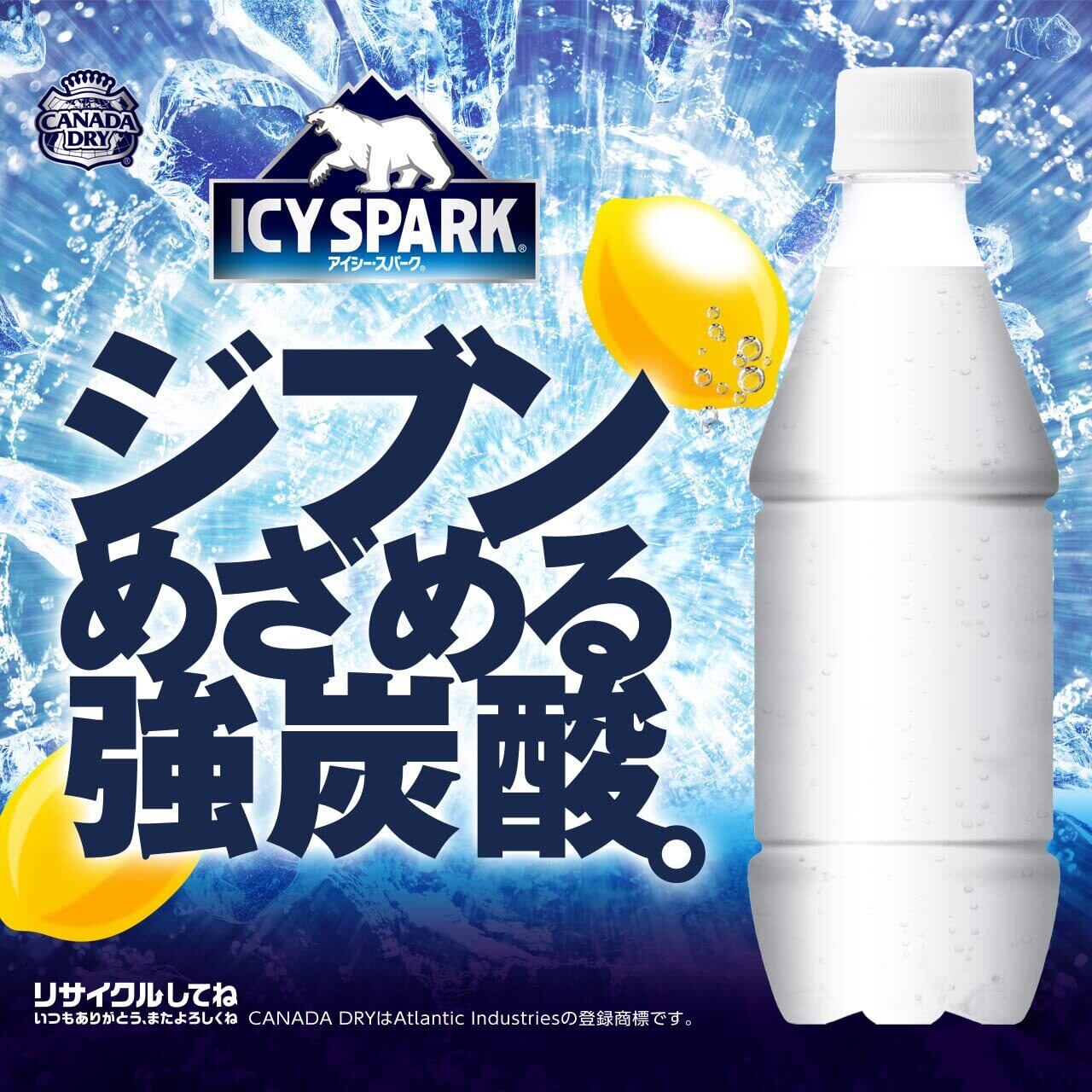 【強炭酸】コカ・コーラ アイシー・スパーク from カナダドライ レモン ラベルレス 430mlPET ×24本