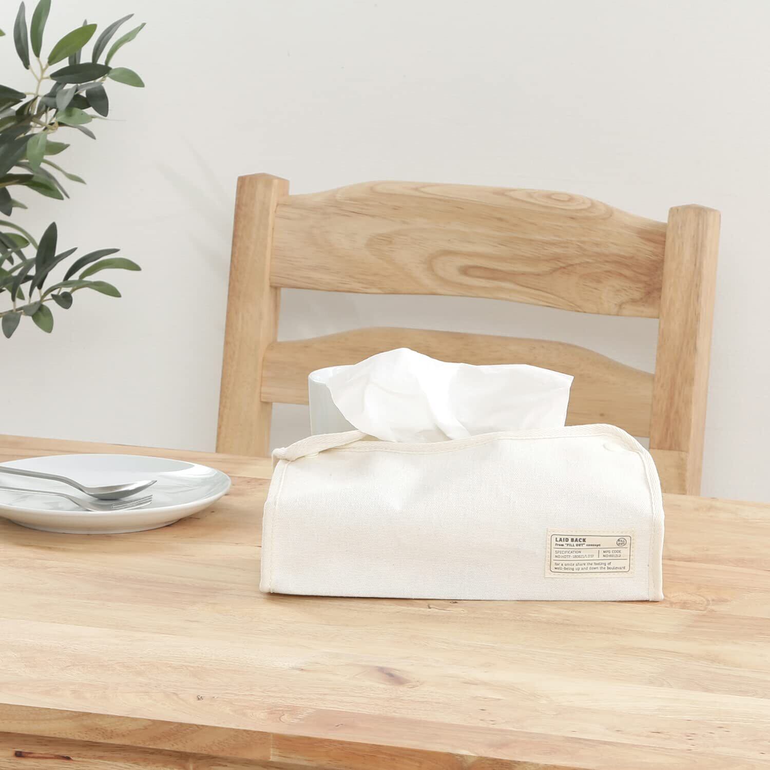 不二貿易(Fujiboeki) ティッシュケース カバー 幅27.5×奥行11×高さ6.5cm アイボリー レギュラーサイズ対応 吊り下げ可能 LAID BACK 27623