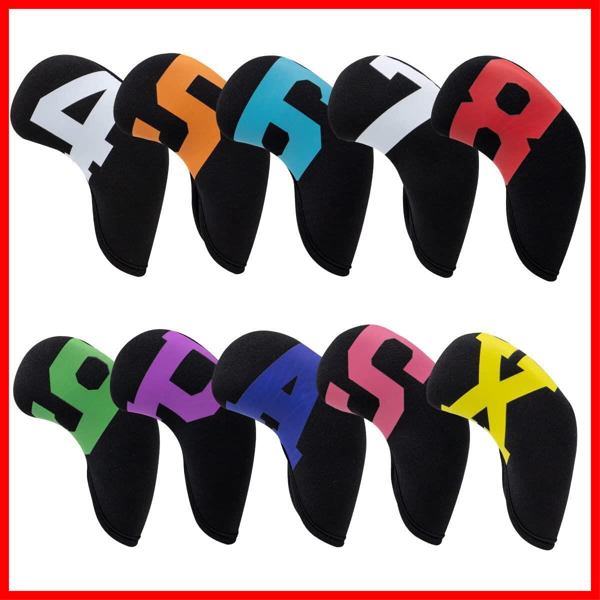 ⛳ゴルフアイアンカバー 10枚セット 4/5/6/7/8/9/P/S/A/X; 4枚(48;52;56;60)。