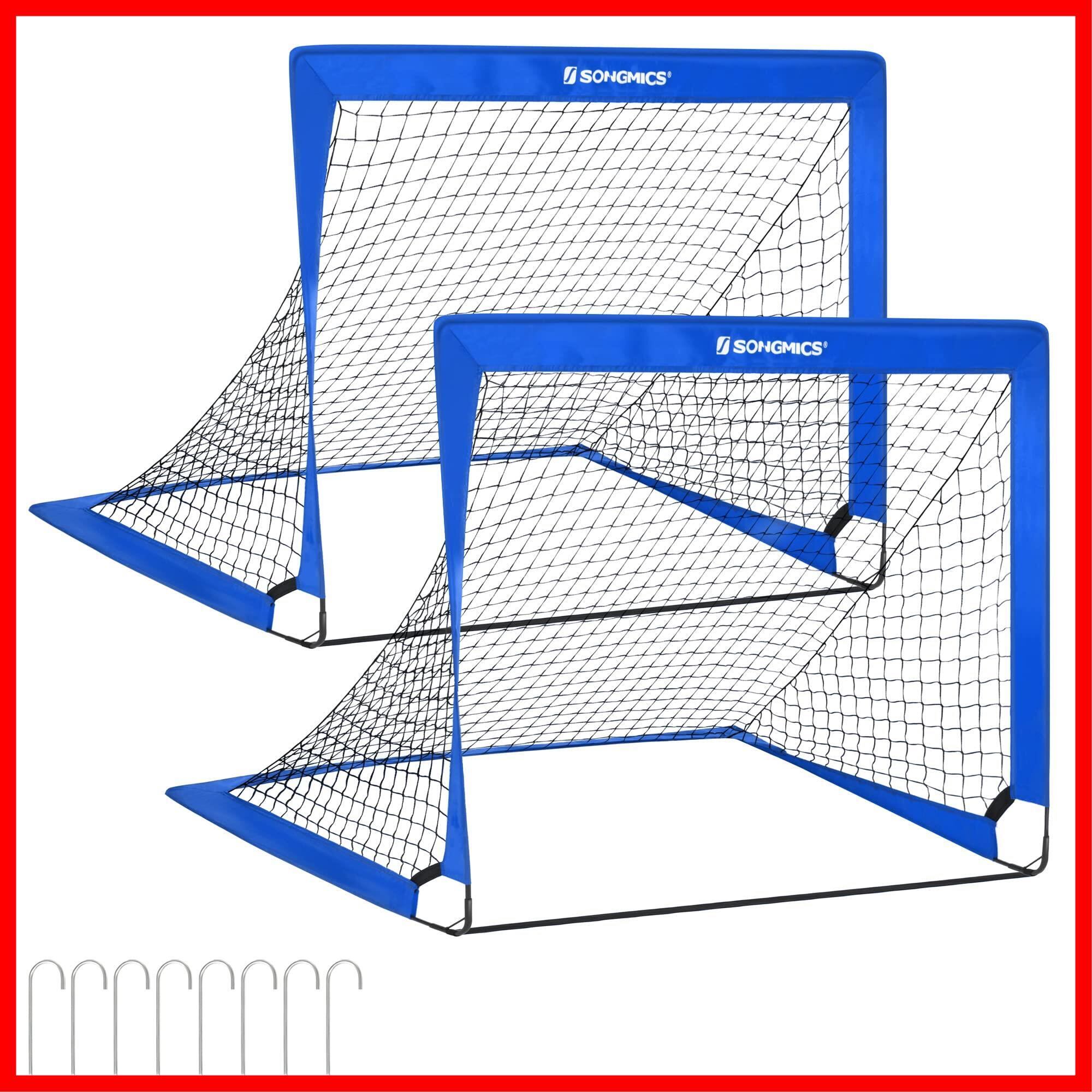 SONGMICS サッカーゴール 2個セット 子供用 折り畳み サッカーゴールネット 子供用 室内 屋外兼用 収納バッグ付き 人気 折りたたみ式、キッズサッカーネット、庭園公園ビーチ 120*90*90 cm