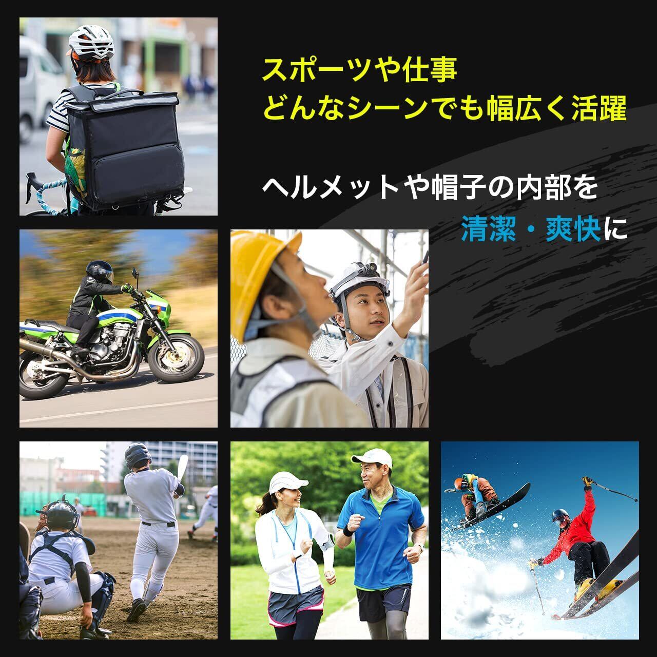 ヘルメット、帽子やスポーツキャップ着用時に、頭部からの汗を素早く吸収し、不快な汗ダレを防ぎます。