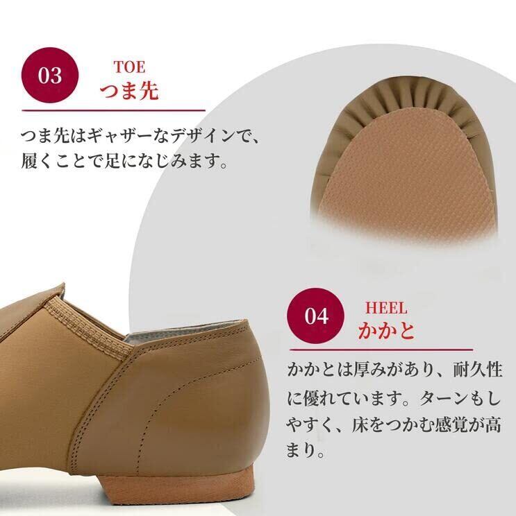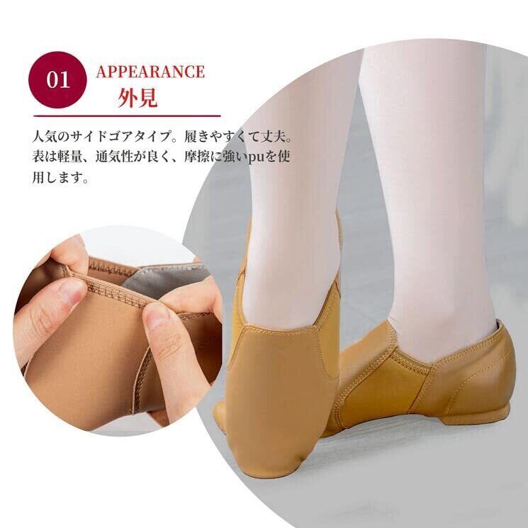 【滑りすぎない】足の形状に合わせてつくられたソールは、足の動きをスムースに!【柔らかい】裏面が柔らかくて、弾力性もあり、曲げやすい、動きやすい、履くのも脱ぐのも楽らく!サイドにゴムがほどこされた抜群のフィット感のスリッポンサイドゴムジャズシューズです。足に優しく、しっかりフット!! 疲れにくい。足なじみがよいのでつま先も伸ばしやすい!! 底はゴムが付いています。