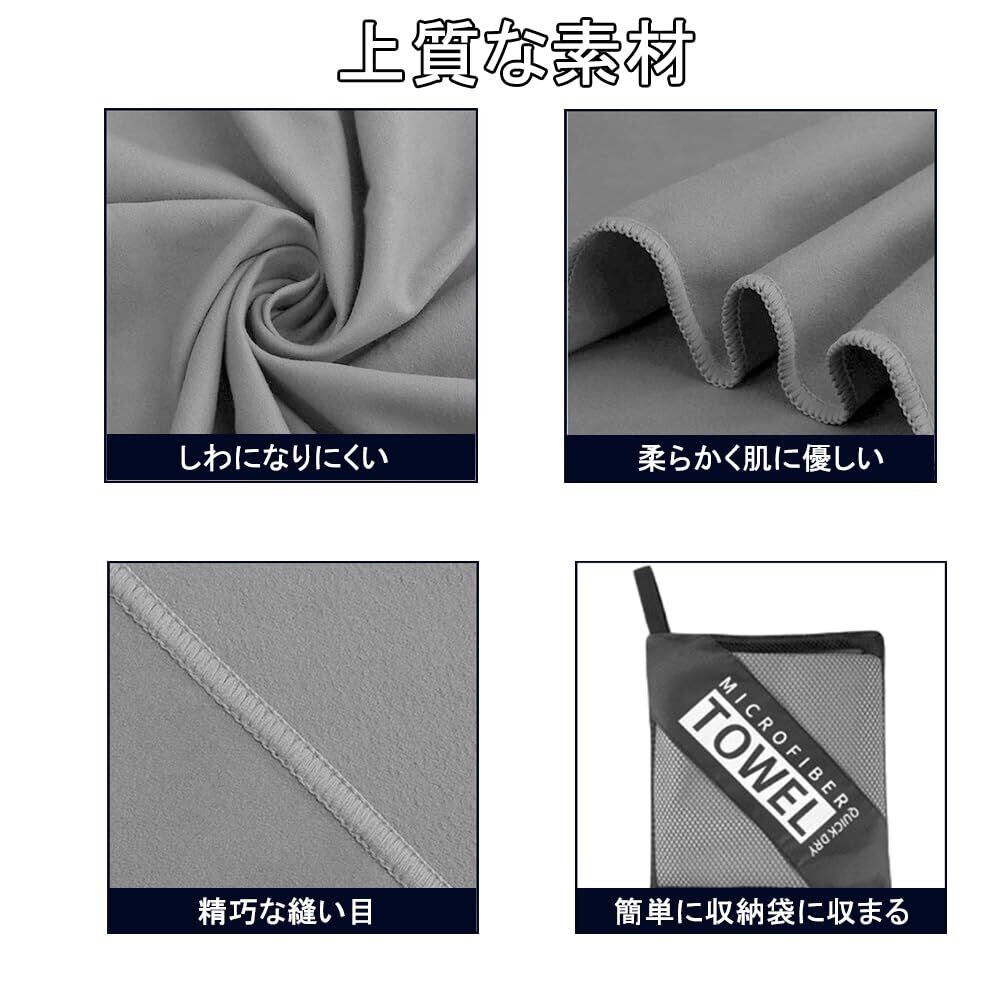 Phyxiul 速乾タオル スポーツタオル 旅行タオル バスタオル スイミングタオル 防臭 耐久性 速乾 軽量 収納袋付き 80x40cm (グレー)