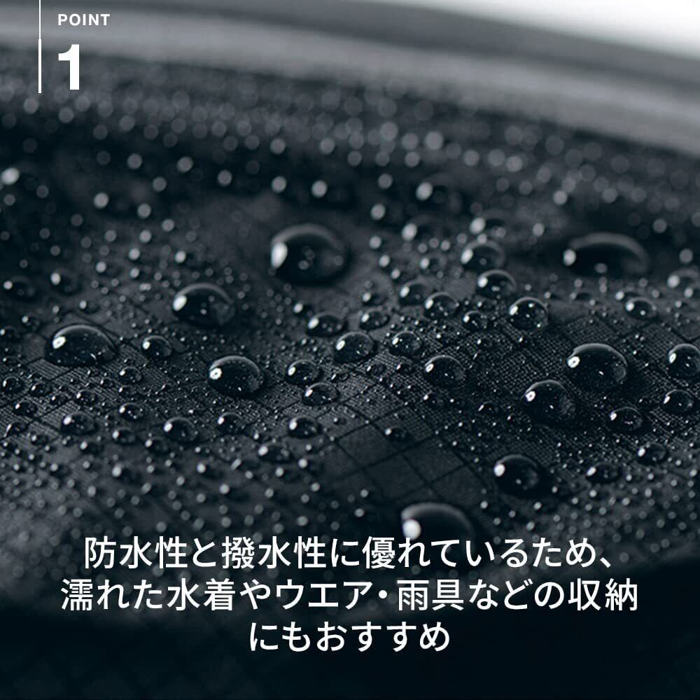 2)防水・撥水ナイロン素材:スイミングバックとして濡れたものの収納はもちろん、防水ケースとして濡らしたくない小物の整理にも。防水性と撥水性に優れているので濡れた水着やウエア、雨具などの収納にもおすすめのウォータープルーフのポーチです。