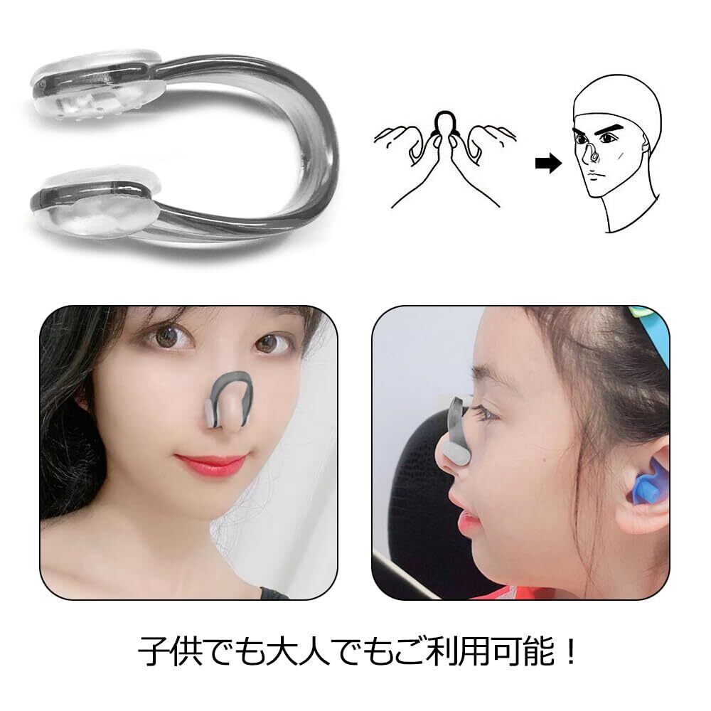 水泳用 ノーズクリップ 2個セット 鼻クリップ 鼻栓 スイム ジム プール アクセサリー トレーニング用 大人 子供 保護 軽量 収納ケース付 ブラック