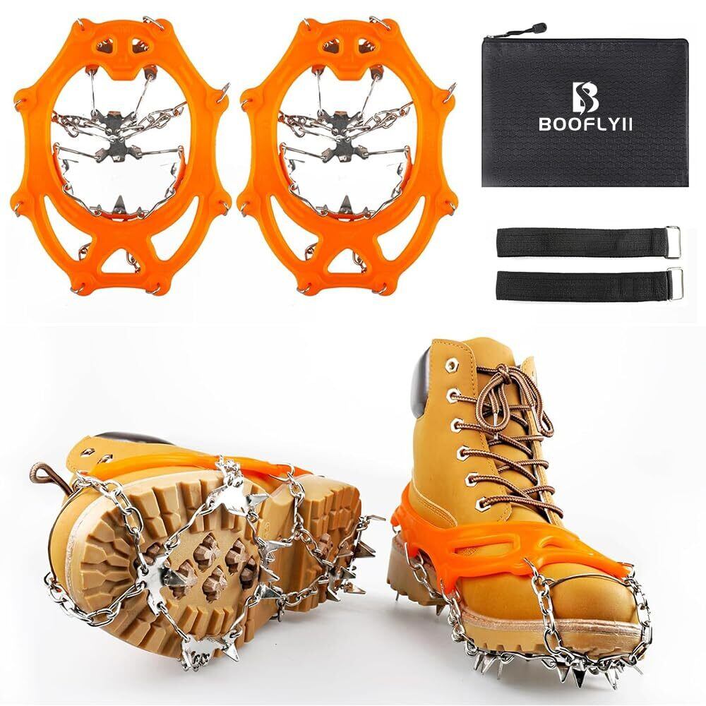 【高品質ステンレス&優れた弾性TPE】BOOFIYII チェーンアイゼンのチェーンとアイゼンは高品質なステンレスで作り、耐用性と腐食抵抗性能が強いです。厚い肩ベルトは優れた弾性のあるTPEで制作され、高い柔軟性、摩擦に強く、割れにくくて、使用寿命が延長されます。アイゼンは張りやすく、大部分の靴に適用します。靴の表面にカバーして、いつでも、どこでも自信を持って前へ進めます。最低適用温度は-41℃です。
