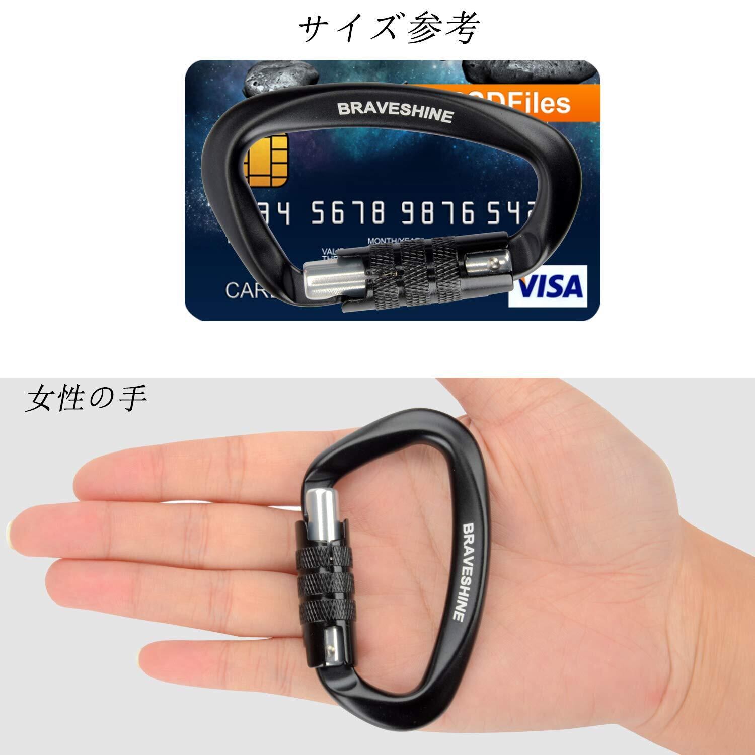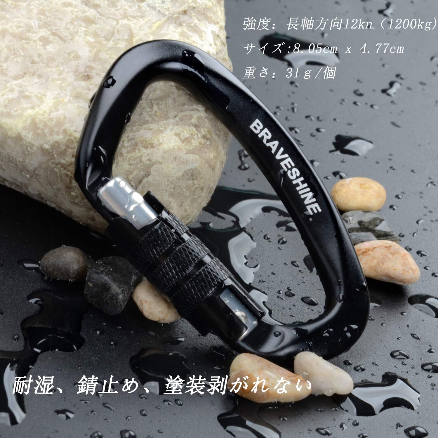 カラビナ 12KN オートロック式 BRAVESHINE 耐荷重1200kg ロックカラビナ Dリング 軽量 ハンモック タープ キャンプ用 荷物のフック 犬のリード用 多機能 2個セット