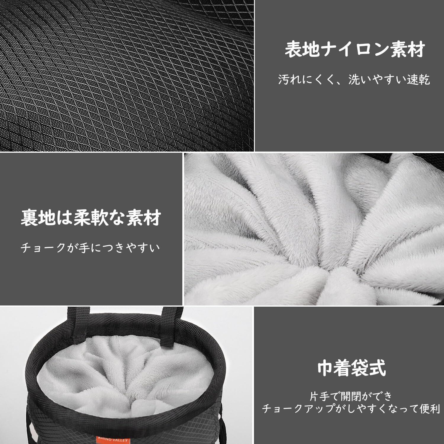 チョークバッグ Rhino Valley ウエストポーチ 巾着式 筒状 ナイロン製 広い開口部 斜め口式 D型カラビナ ボルダリング、クライミング、登山用ポーチ アウトドア装備 調整ベルト:約80~88cm バッグ直径:13cm