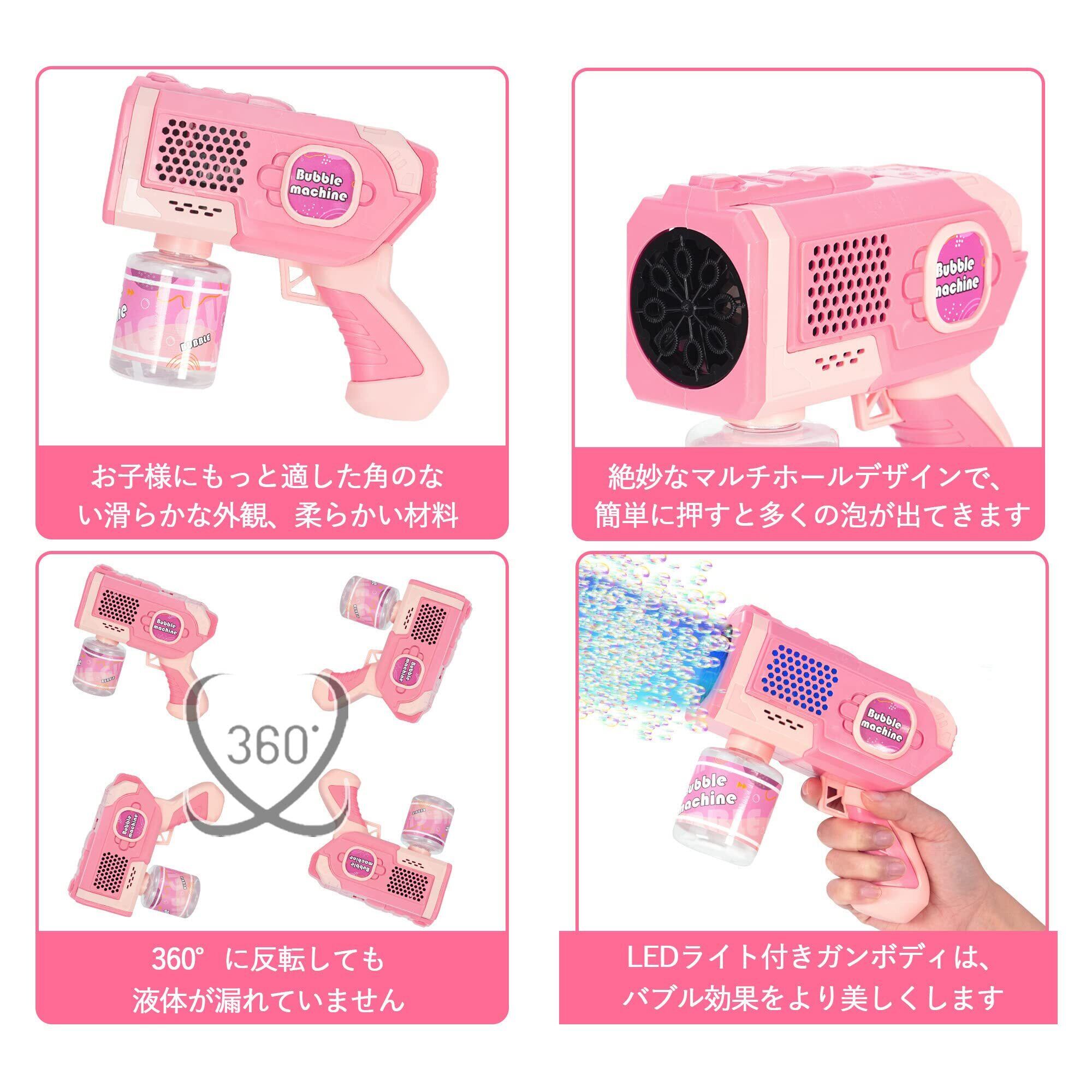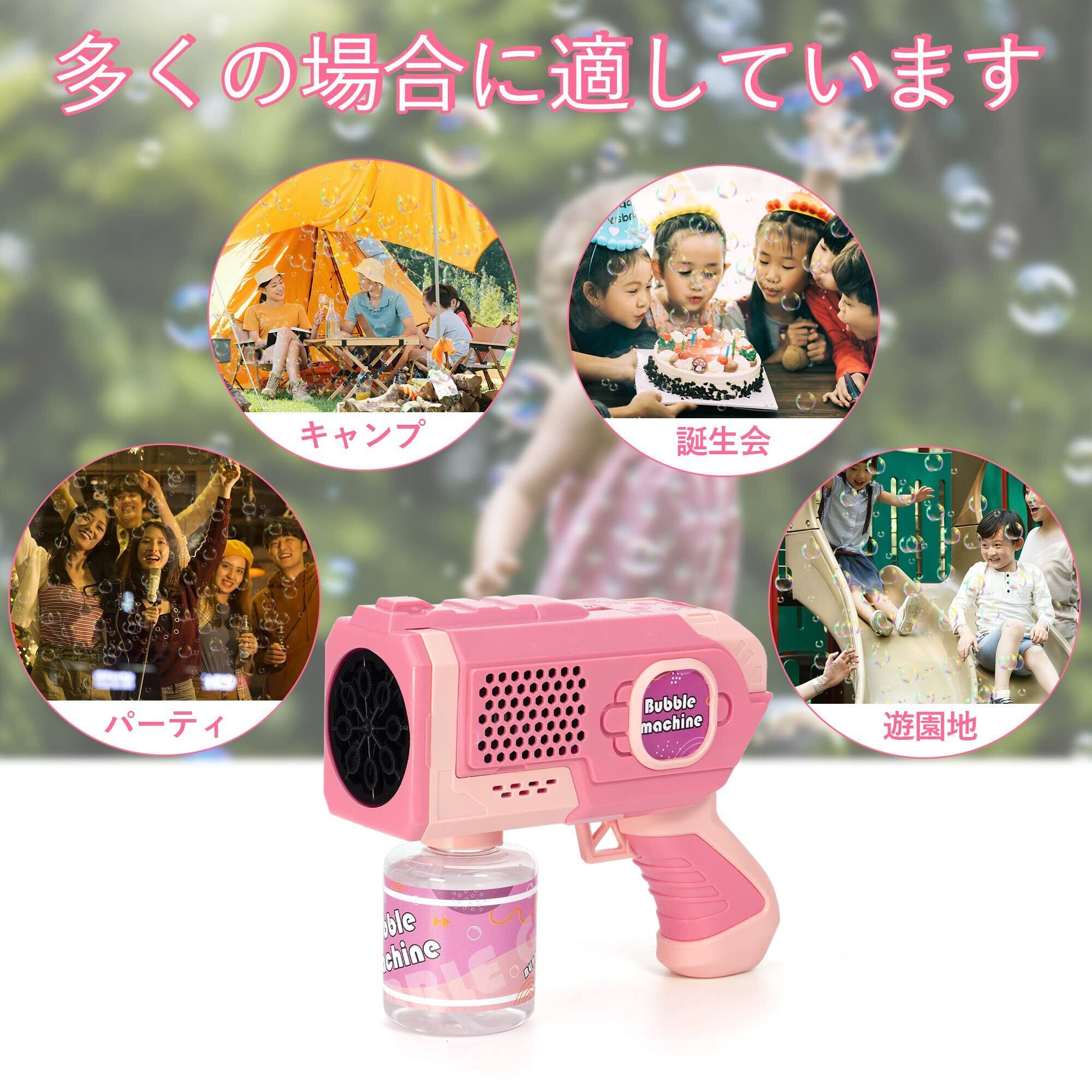 色:ピンクキャンプ 結婚式 ピクニック 外遊び 子供のおもちゃ 誕生日 LEDライト付き 液漏れ防止 バブルガン プレゼント 自動 バズーカ 電動 (ピンク) シャボン玉 AOMEVOLEO
