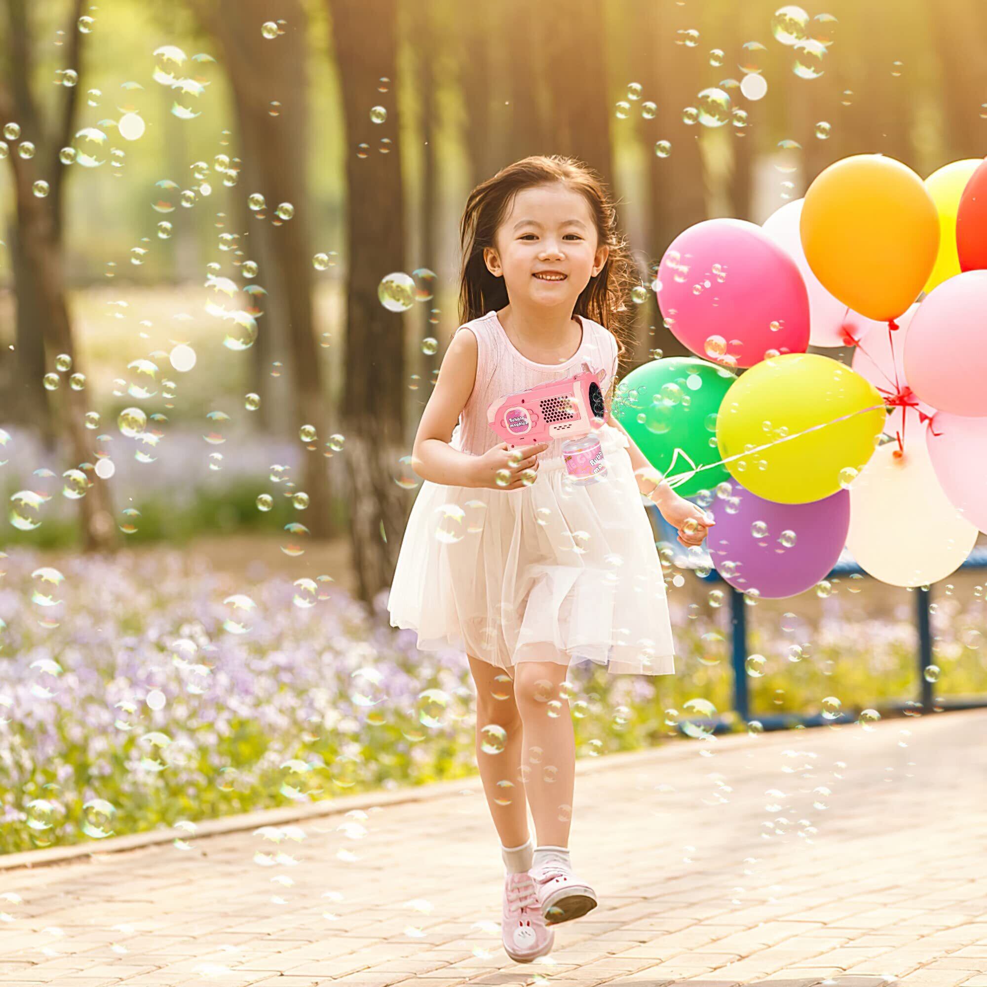 AOMEVOLEO シャボン玉 電動 バズーカ 自動 バブルガン 液漏れ防止 LEDライト付き 子供のおもちゃ 外遊び ピクニック キャンプ 結婚式 誕生日 プレゼント (ピンク)