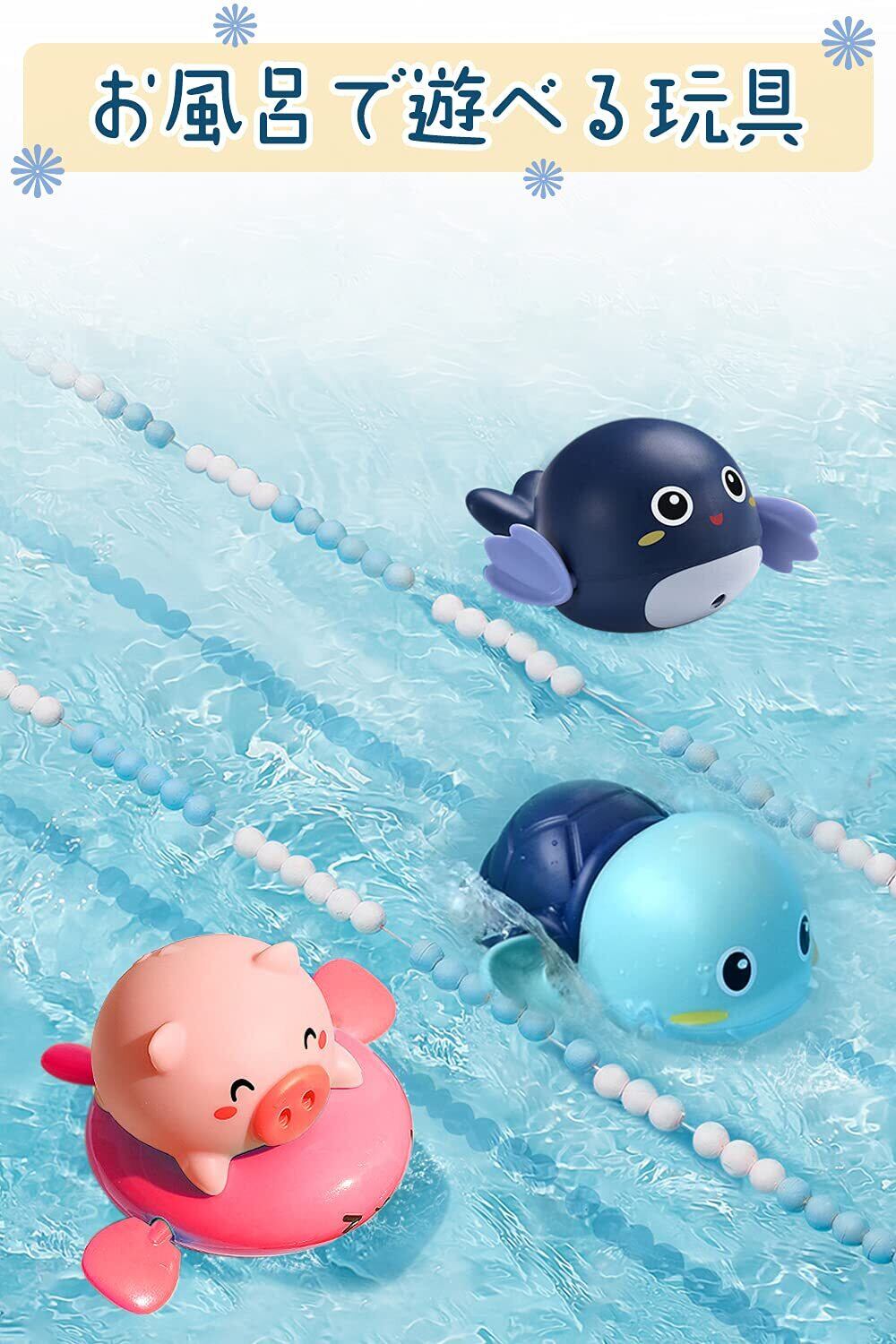【簡単な遊び方】本体の裏側のネジ式を回すだけで水の上をスイスイ泳ぎます。電池がいらず繰り返し使用可能です。豚さんは噴水でき、子供に遊びながらシャワーでます。
