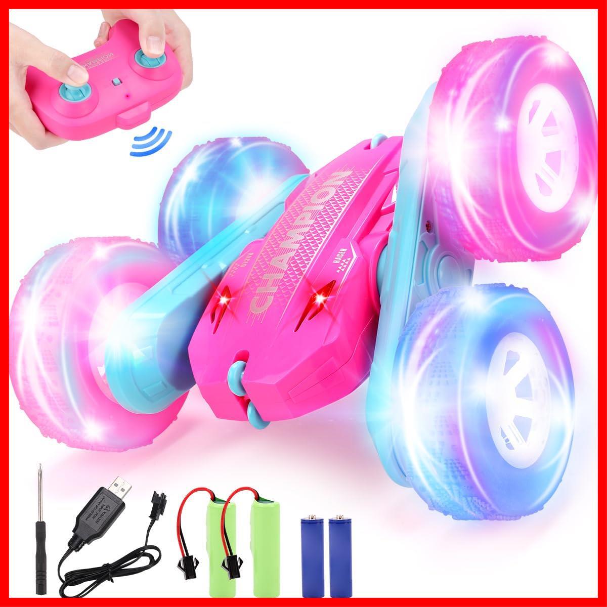 REMOKING ラジコンカー こども向け RCカー リモコンカー 室内 360度回転 両面走行 四輪駆動 オフロード 車おもちゃ LEDヘッドライト 車輪が光り バッテリー2個付き 2.4Ghz無線操作 贈り物 クリスマス プレゼント 子供 女の子(ピンク)