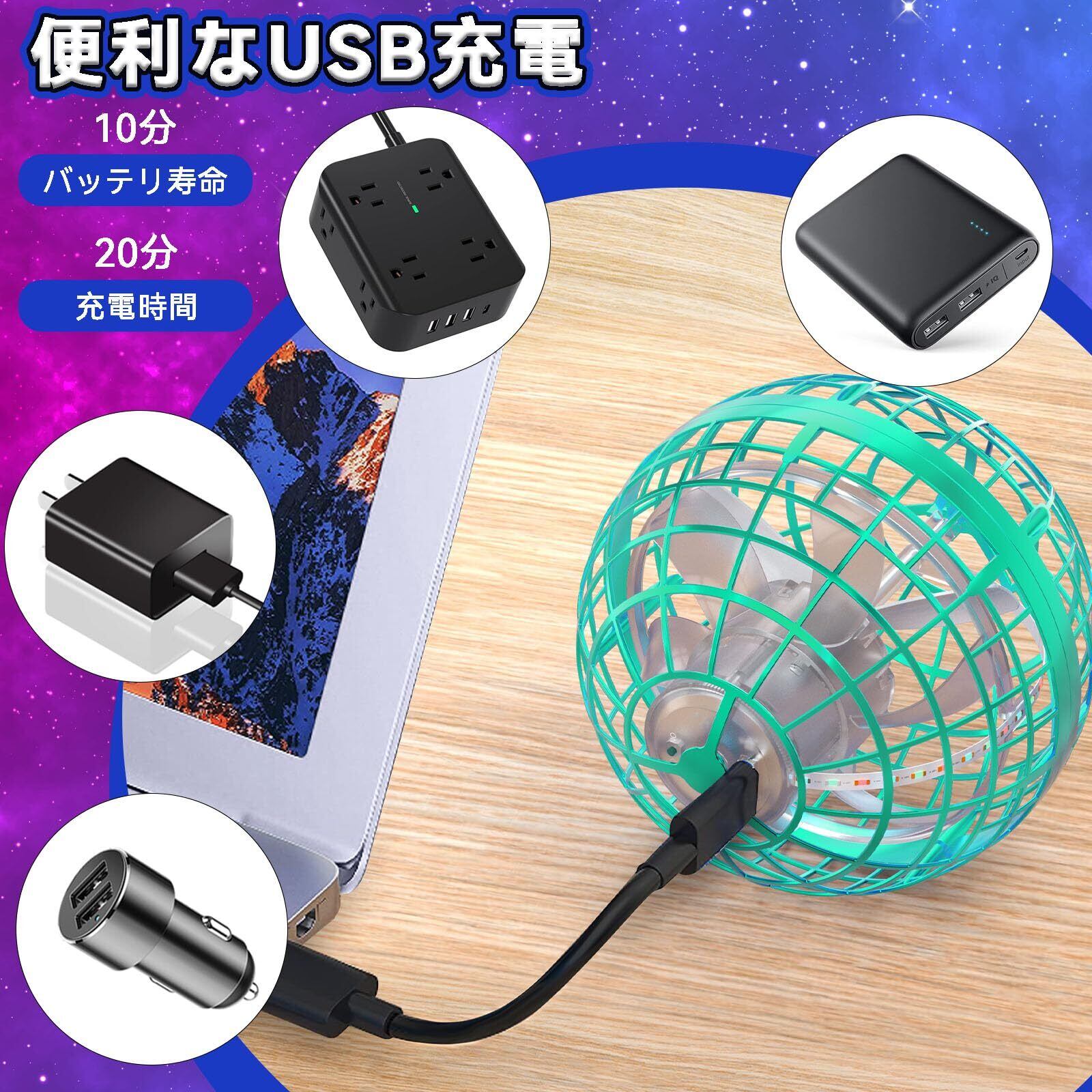 色:グリーンジャイロ飛行ライトボール おもちゃ ホバリング ブーメランスピナー Tikduckフライングボール RGBライト付き360°回転USB充電式 屋外/屋内 子供 大人向けミニドローン 人気 誕生日 プレゼント