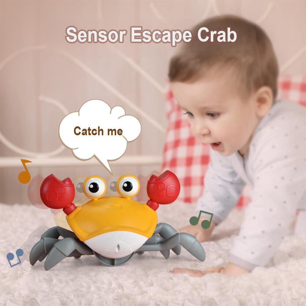 【モバイルカニおもちゃ】カニおもちゃはLED発光クロール機能とセンサー障害物回避機能を備えています。明るい色とかわいいカニの形が赤ちゃんの注意を引きます。移動中に障害物に遭遇すると、ミュージカルカニのおもちゃは時間とともに逆方向に移動します。