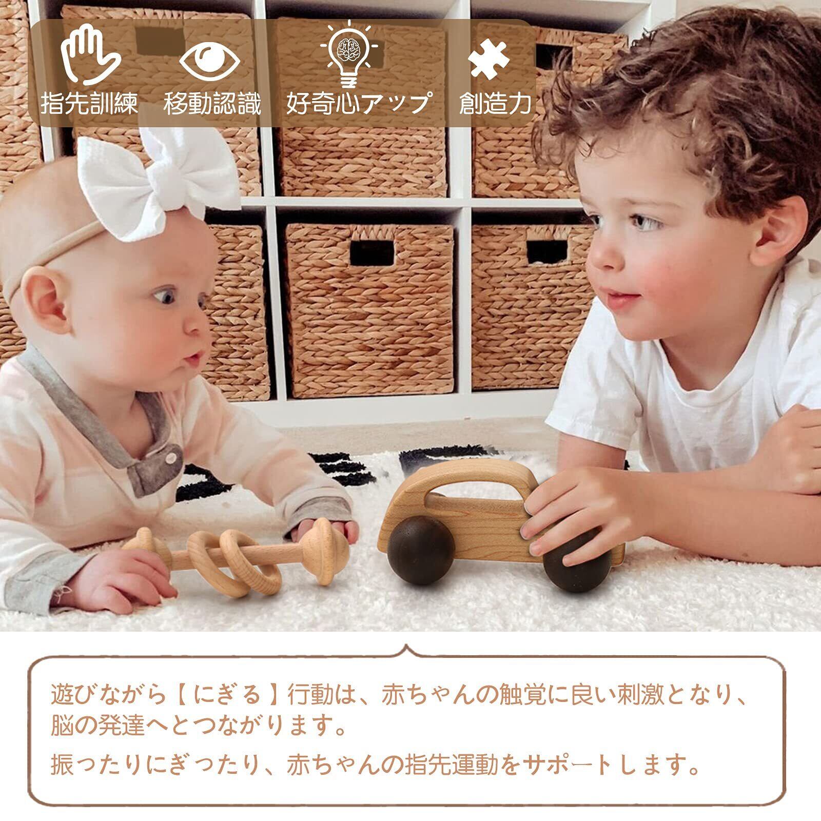 let‘s make ガラガラ ラトル 木製ミニカー 木のおもちゃ 獅子 4点セット おもちゃ 赤ちゃん 木製 無塗装 幼児 手押し車 ギフト 出産祝い 知育玩具