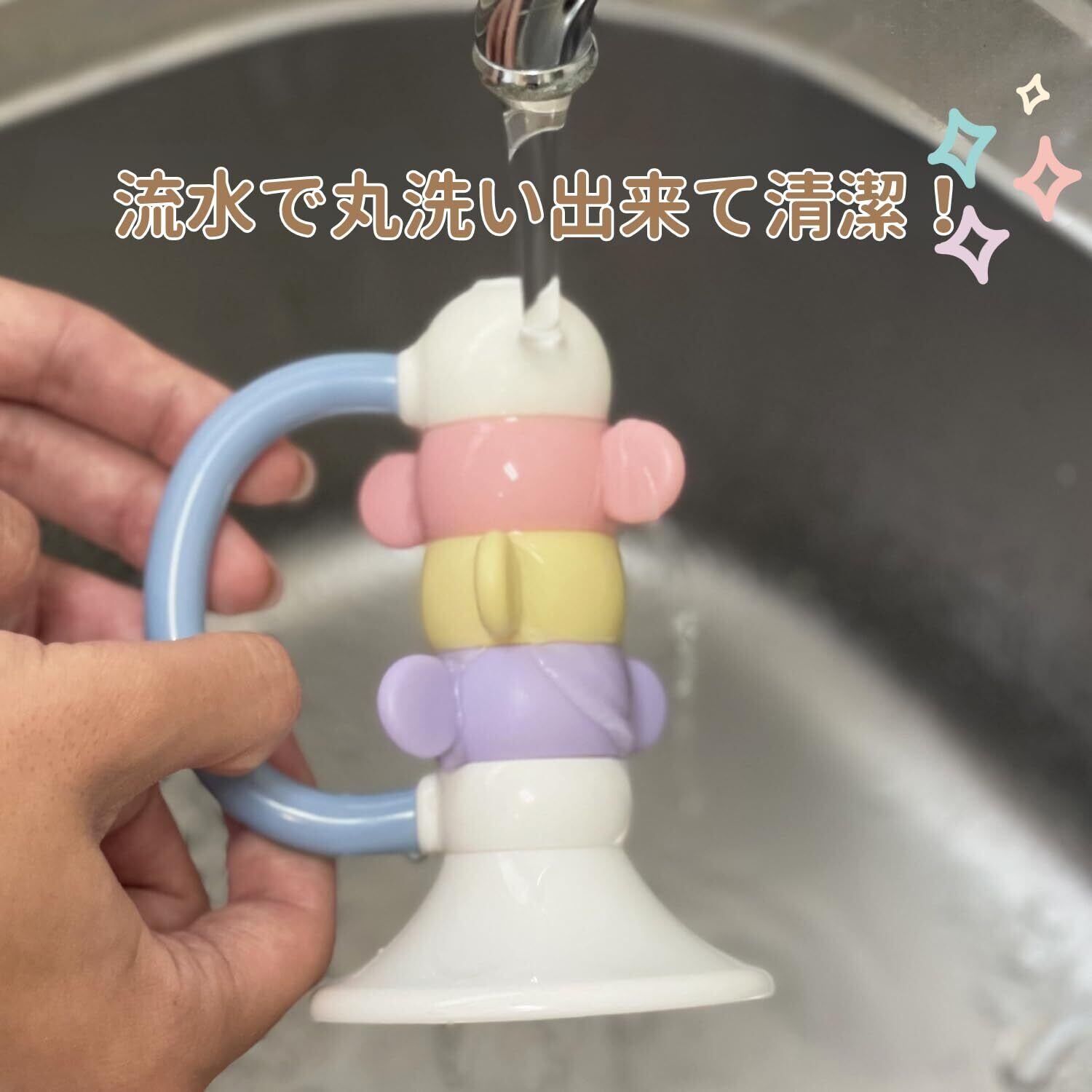 また、赤ちゃんに優しい丸洗いできるガラガラです。