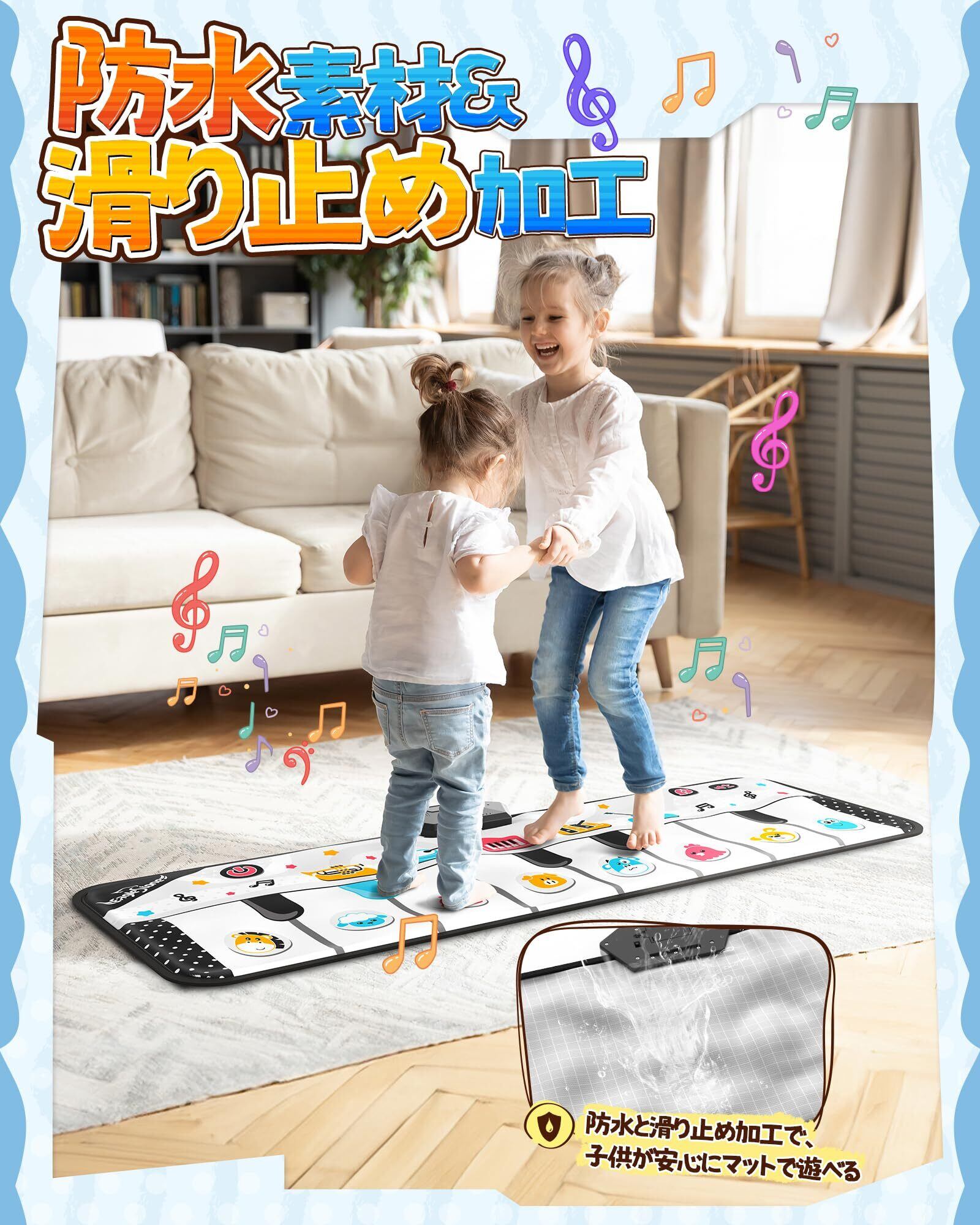 サイズ:108cm*39cmミュージックマット 音楽マット 音量調整可能 5種類楽器音 ピアノ 防水素材 8種類動物音 滑り止め 誕生日 8鍵盤 クリスマス 折り畳み プレゼント 新年 子供 ハロウィン ギフト ピアノマット 子供 おもちゃ 女の子 男の子 EagleStone アップグレード版