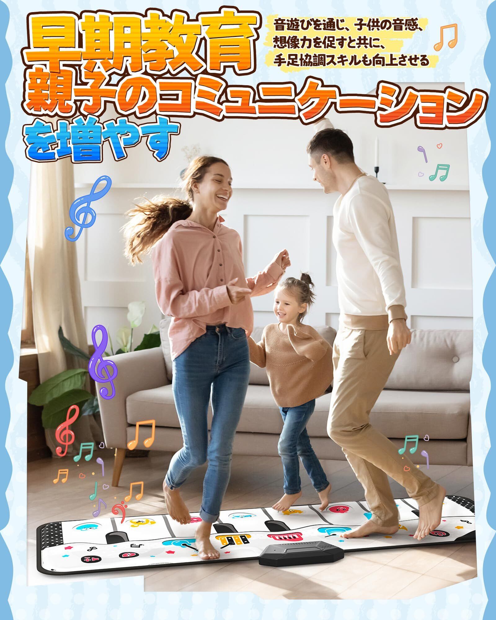 【早期教育】ピアノマットで音楽教育を行います。音遊びを通じ、子供の音感、想像力を促すと共に、手足協調スキルも向上させます。子供へ音楽環境を提供することで、脳力も一緒にトレーニング!製品が届いたら、もし何か問題がありましたら、ぜひこちらにご連絡ください。初期不良の場合、こちらは交換などが対応できますので、どうぞご安心ください。