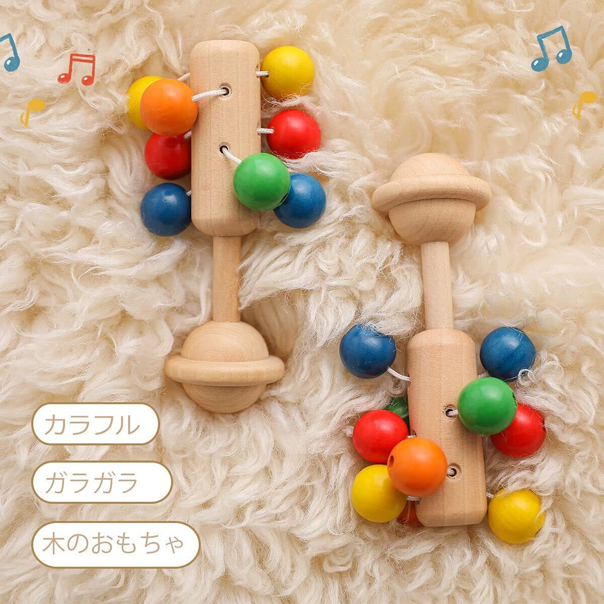 色:カラフルラトルがらがら Babe ラトル おもちゃ 赤ちゃん 木製 木の揺れる音 新生児 Promise 子供 プレゼント ギフト 出産祝い 新生児贈り物