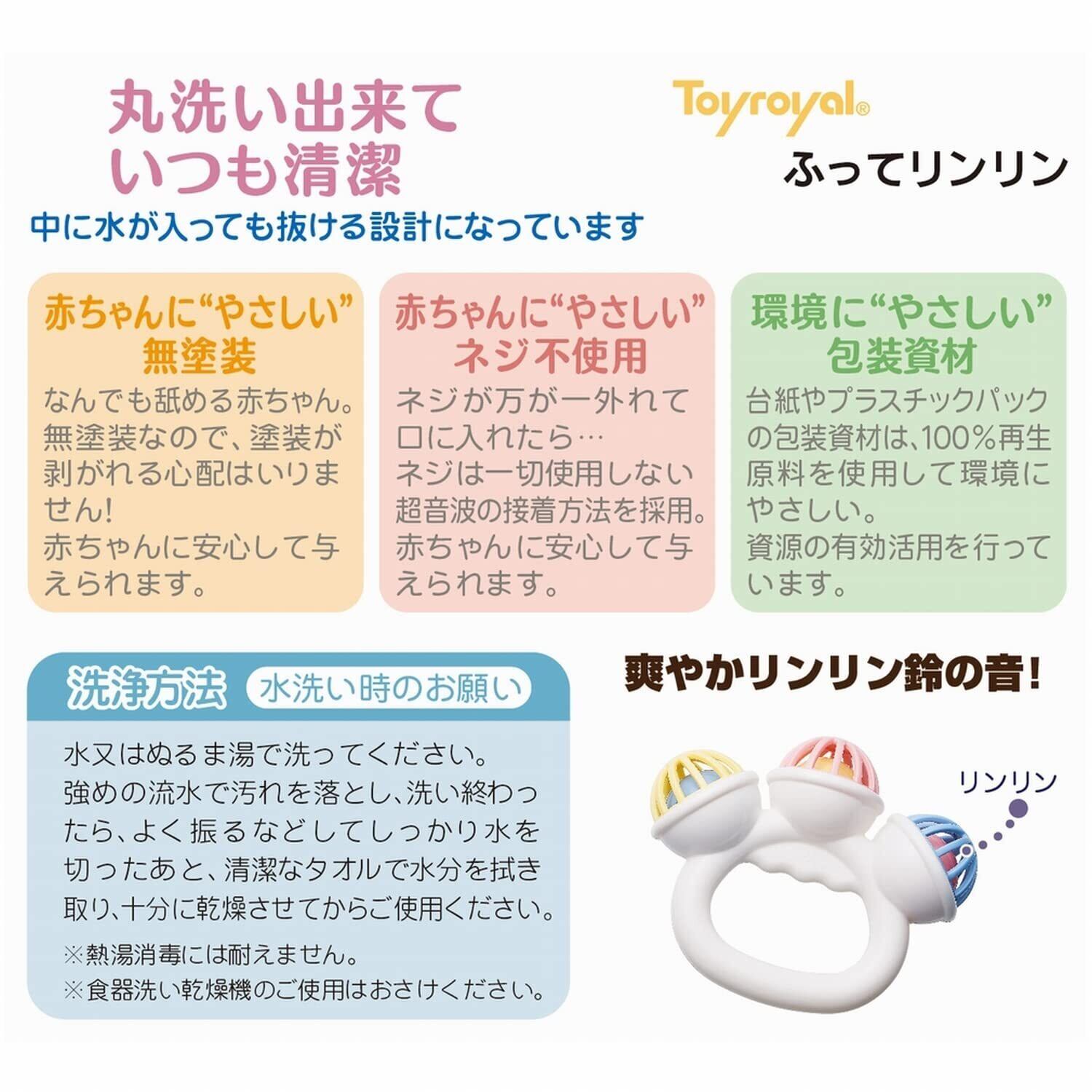 トイローヤル ふってリンリン (ガラガラ/握りやすい) 丸洗い可能 清潔 (ネジ不使用/優しい音色) 赤ちゃん ベビー 歯固め