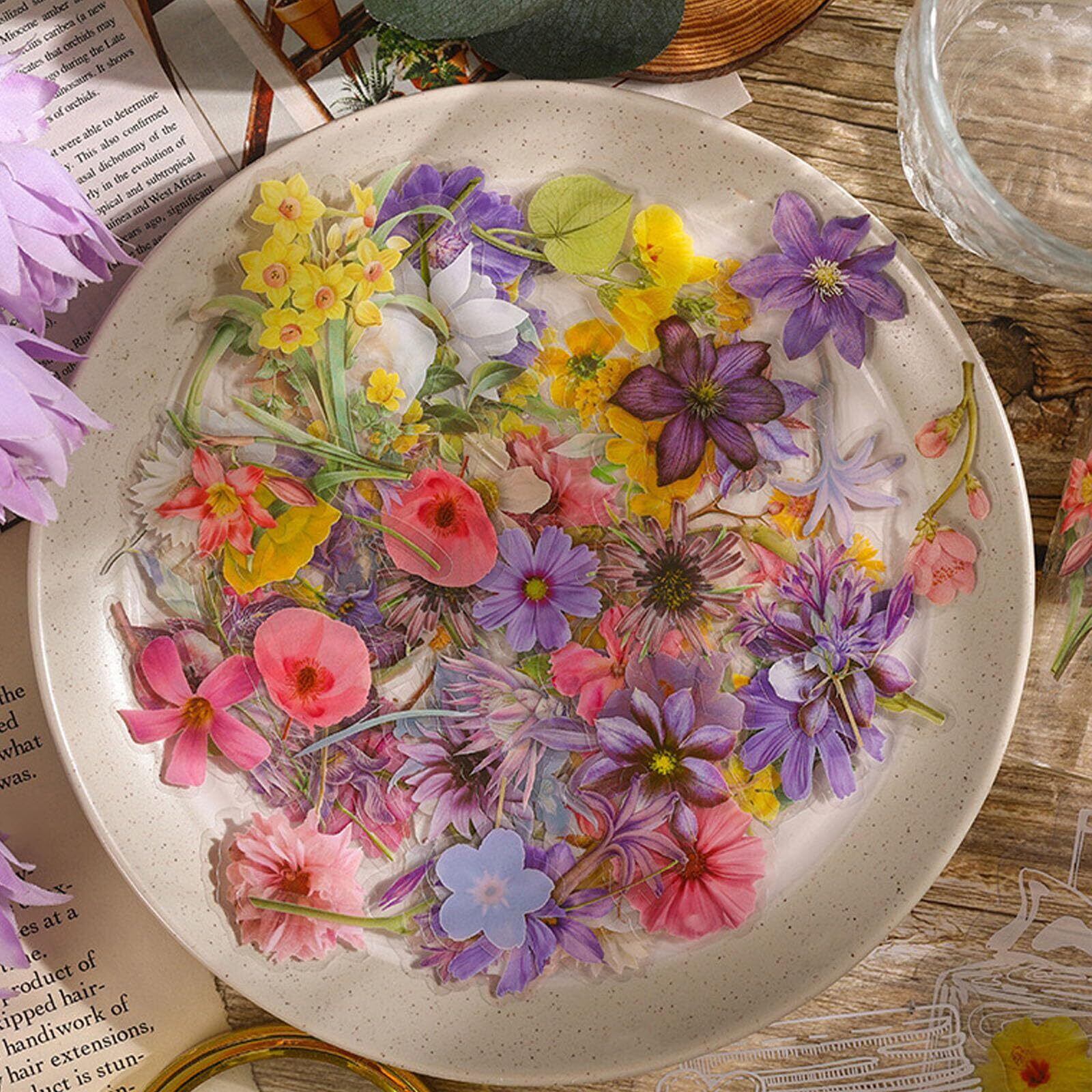 CHUXI 200枚セット ドライフラワーのしおり 可愛い ブックマーク 手作り diy 透明のしおり 大量 ブックマーク ステッカー クリエイティ手帳 ハーバリウム 天然花読書マーク 日記帳 DIYドライフラワーメーカー 幼稚園 大人用 子供用 ホームスクール用品 文房具読む プレゼント用DIY 手作りダイアリー ステッカーパック 花ステッカー 防水ステッカー