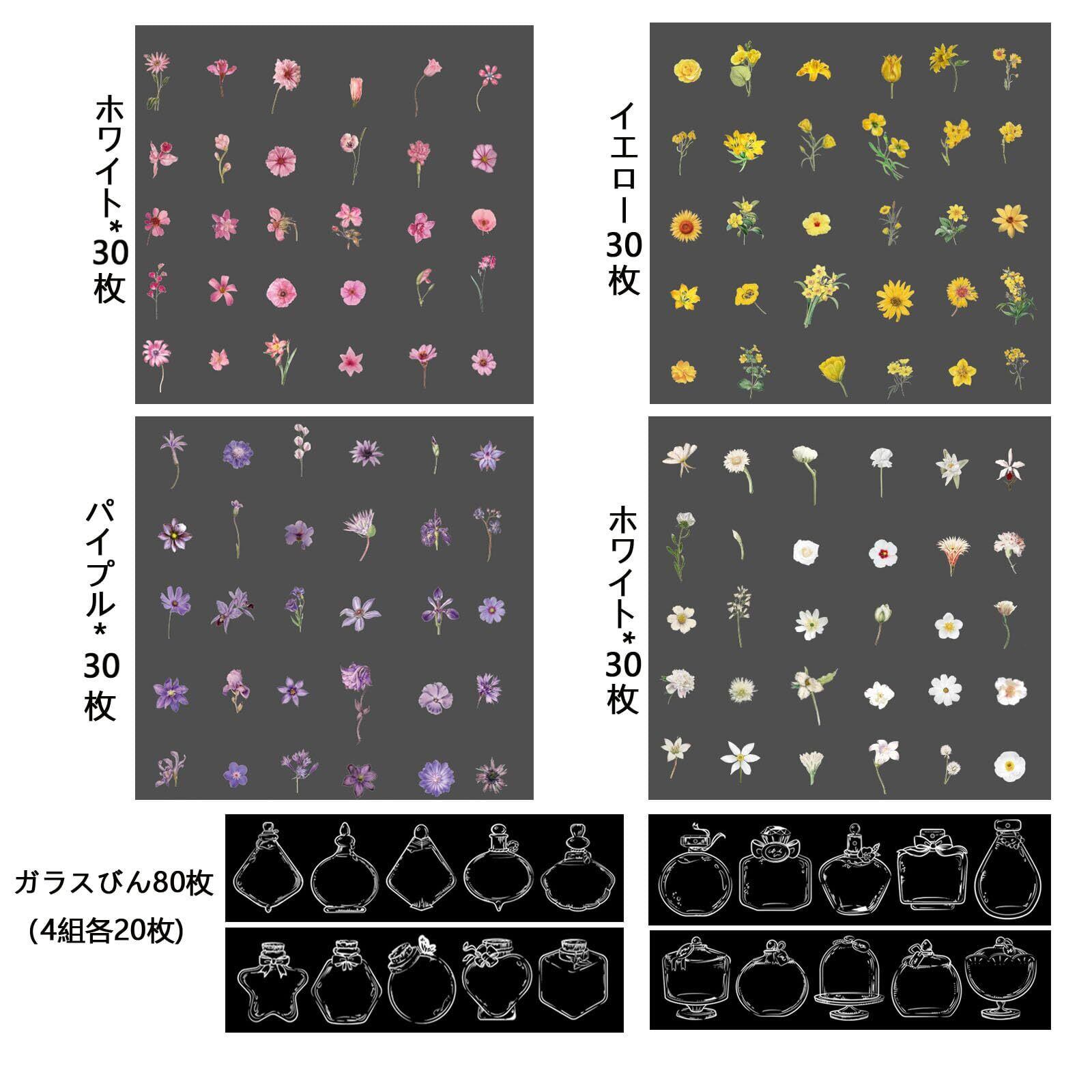 【持ち運びが簡単透明なしおり】 - 粘着性のある裏紙で、簡単に破れたり貼り付けられます。ホワイト*30枚,ピンク*30枚,イエロー*30枚,パイプル*30枚,合計120個,ガラスびん80枚(4組各20枚)共合計200個。十分な数で、クリエイティブでデザインすることができます。