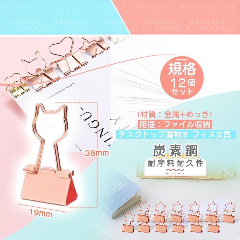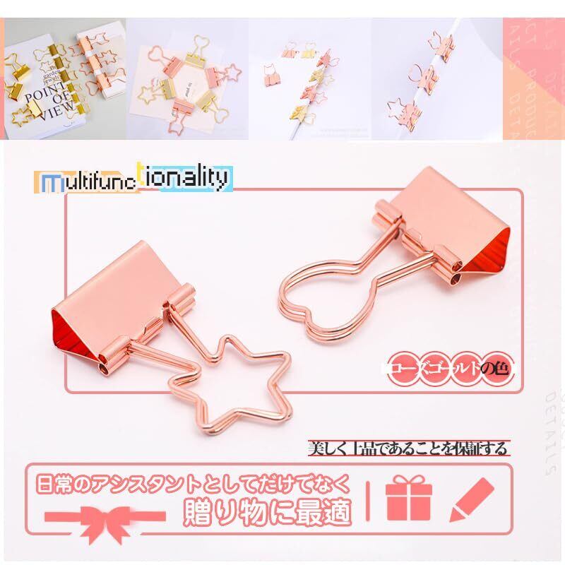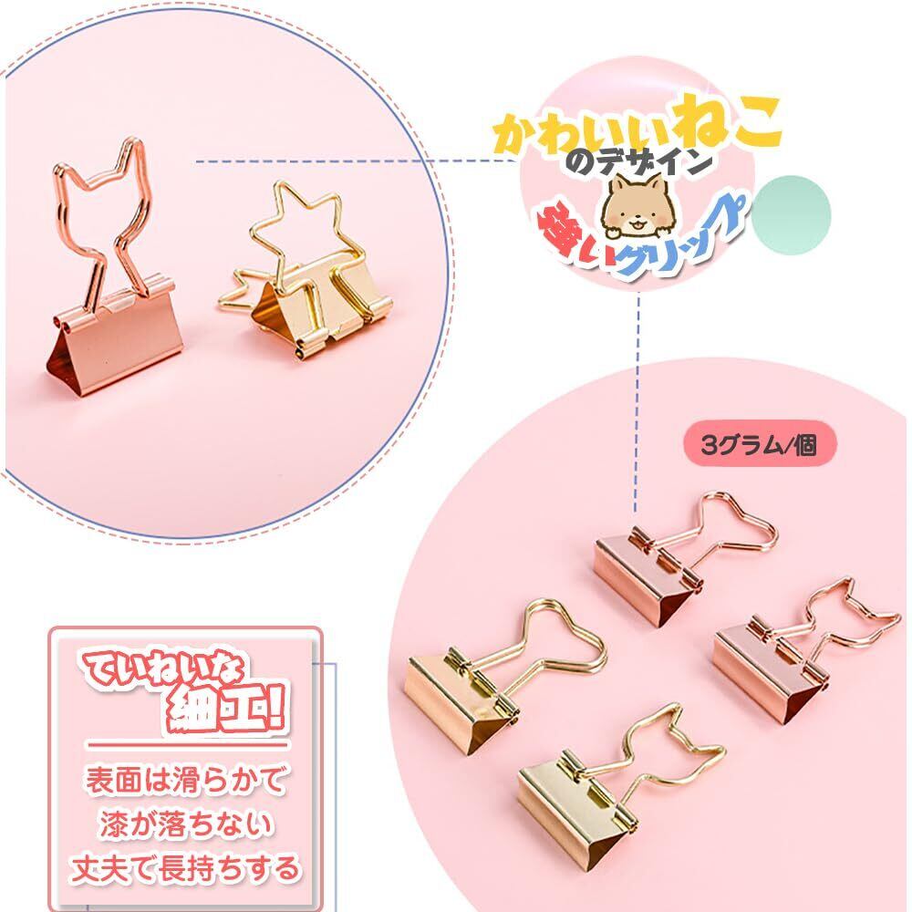 【2022最新】オフィス用 ローズゴールド 書類整理オフィス 文房具 事務用品 金属製 かわいい クリップ ペーパクリップ ダブルクリップ 12pcs 猫型 ねこ型