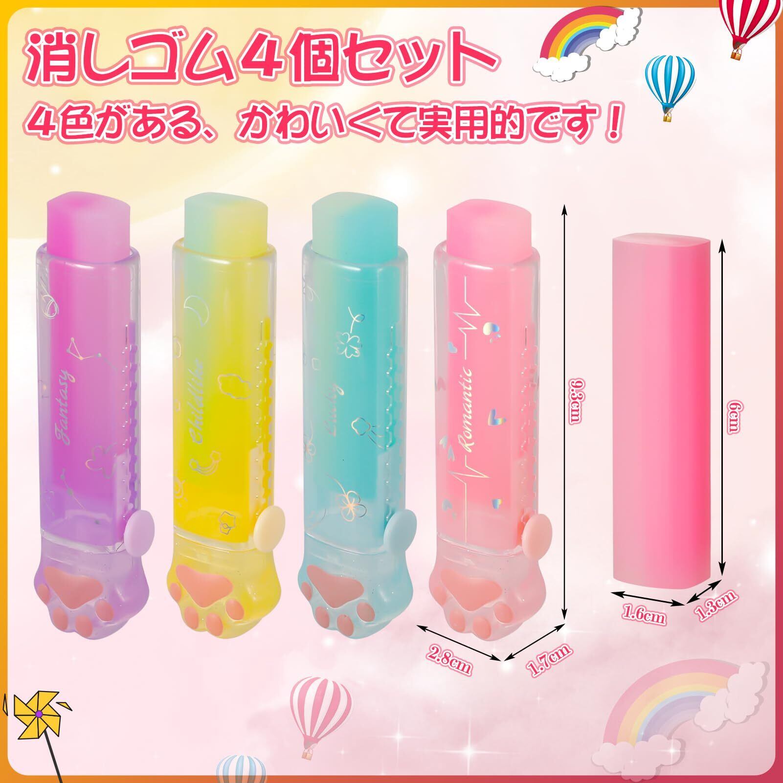 Yorkereynom 消しゴム 4個セット スティック消しゴム 猫の肉球形 伸縮可能 よく消える かわいい 鉛筆消しゴム 学校 オフィス用品 文房具