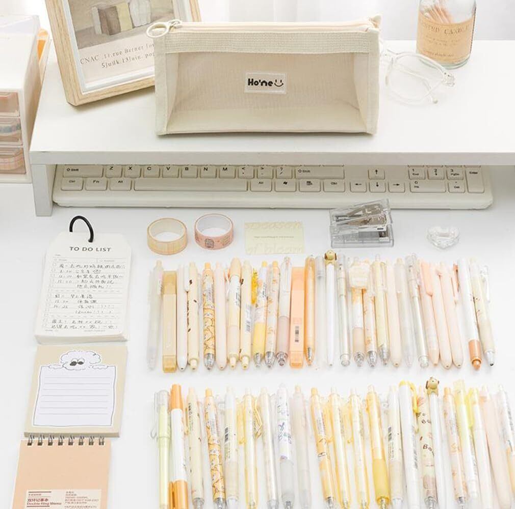 【シンプルなデザイン、ペンケースとシャーペンや消しゴムや定規などの文房具の色味を統一すると、おしゃれに見せられます。