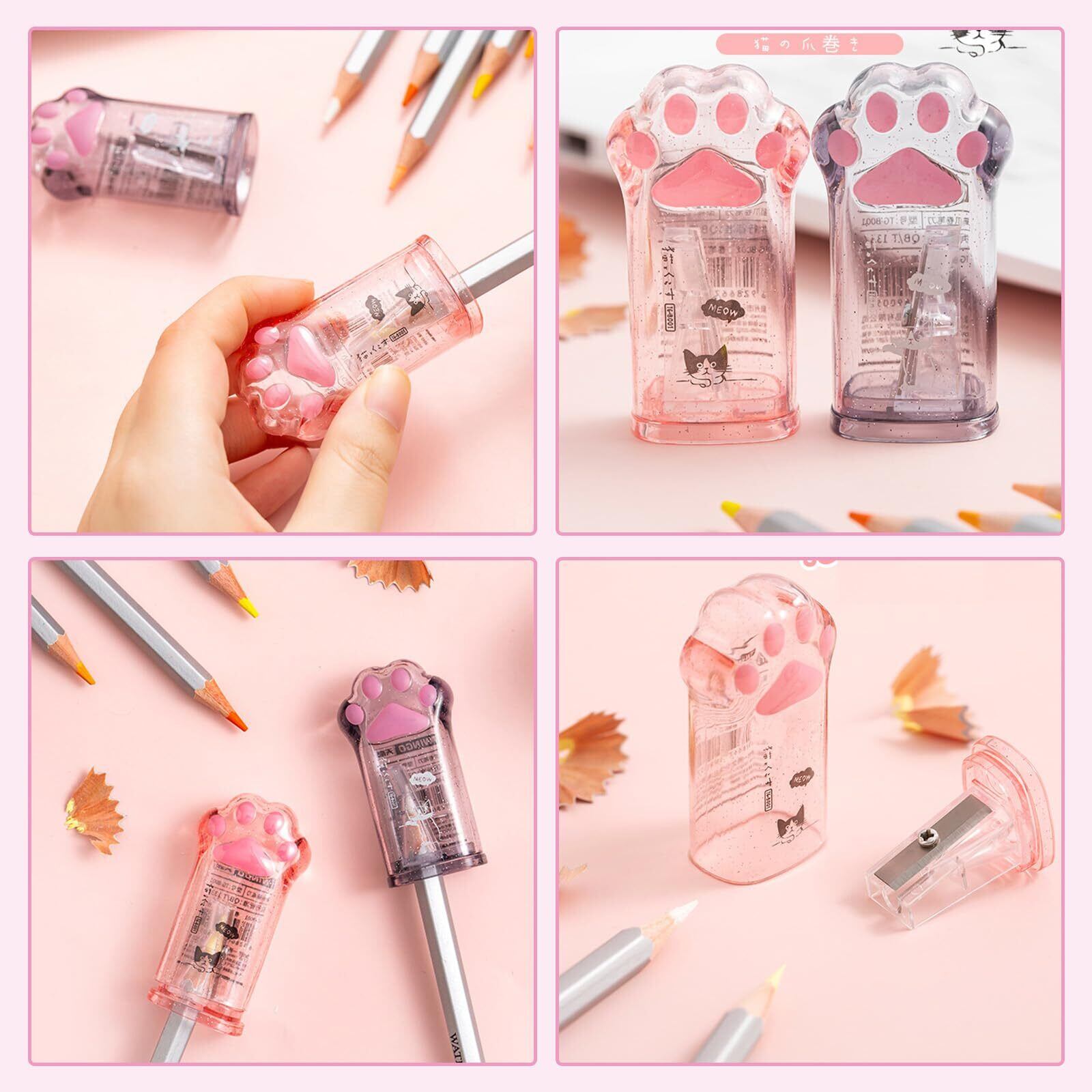 【新春セール】オフィス 文房具 測量用品 学生 プラスチック 猫の足鉛筆削り かわいい 手動 【4点セット】 ミニ 鉛筆削り 携帯 猫の肉球 カワイイ学用品学生賞キッズギフト 15cm 小学生 定規 文房具 Coollooda