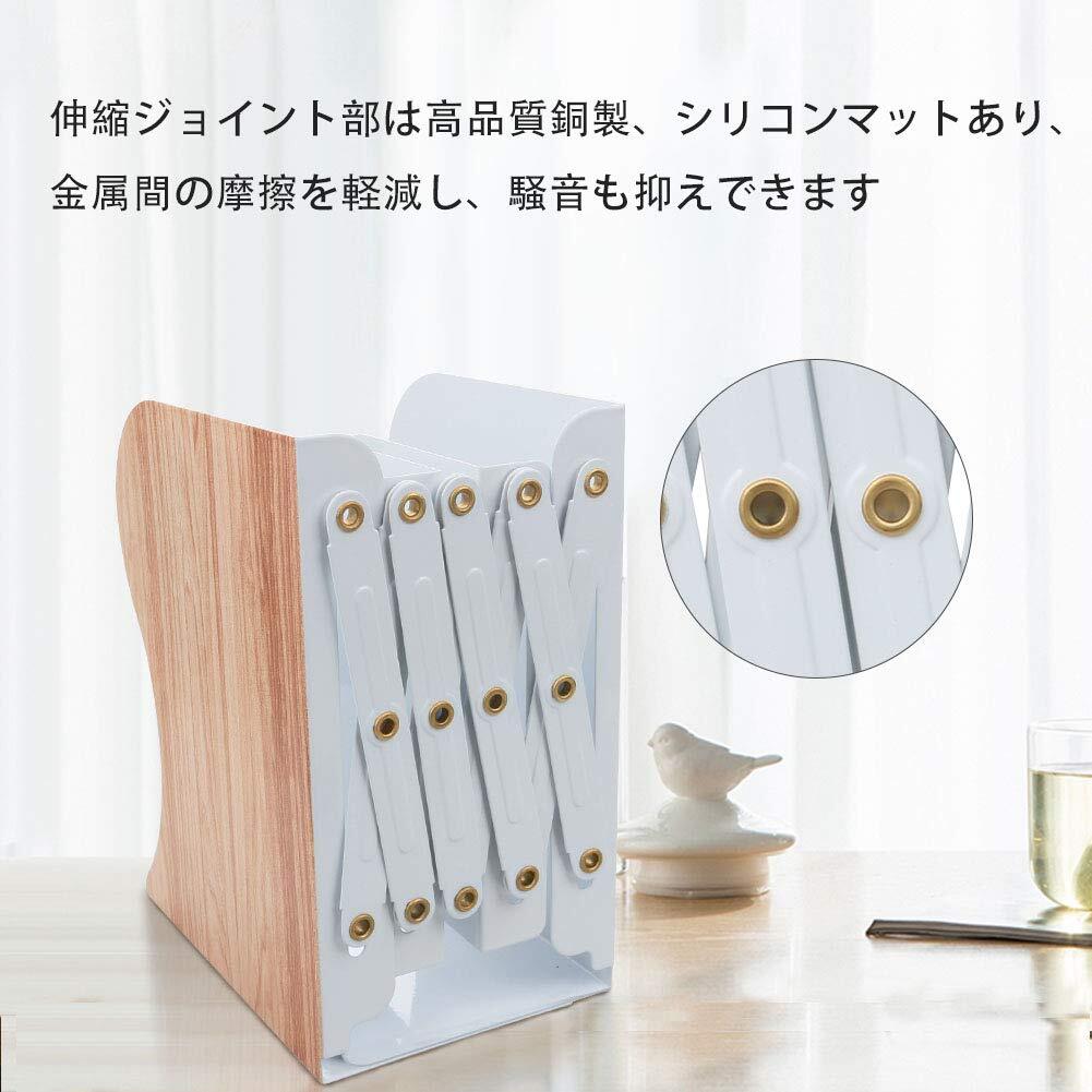 ブックエンド 金属製 本立て 伸縮 ブックスタンド 卓上収納 スライド式 収納 デスク整理 卓上本棚 卓上 本立て おしゃれ 仕切りスタンド (木目柄)