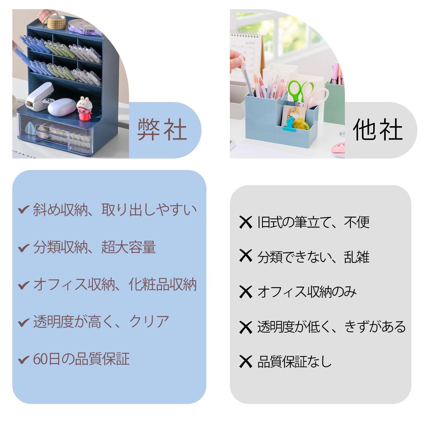色:ブルー収納 小物 整理整頓 大容量 取付不要 分類多機能 透明引き出し付き 斜め掛け式ペンホルダー 文房具収納 化粧品/オフィス/書斎/学校/事務用品 卓上収納 ペン収納 一体設計 ブルー ペン立て デスクオーガナイザー