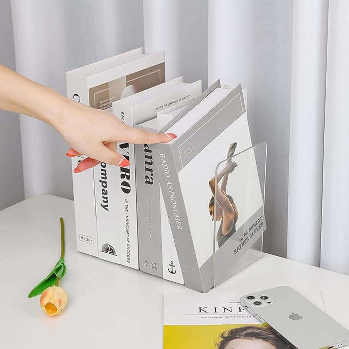 【整理整頓】アクリルブックエンドは、本や雑誌をきちんと整理し、あなたの作業スペースをスッキリと保つのに役立ちます。透明なデザインがどんなインテリアにもマッチし、お部屋をすっきり見せる効果も。これで、大切な書籍をいつも手の届く場所に。