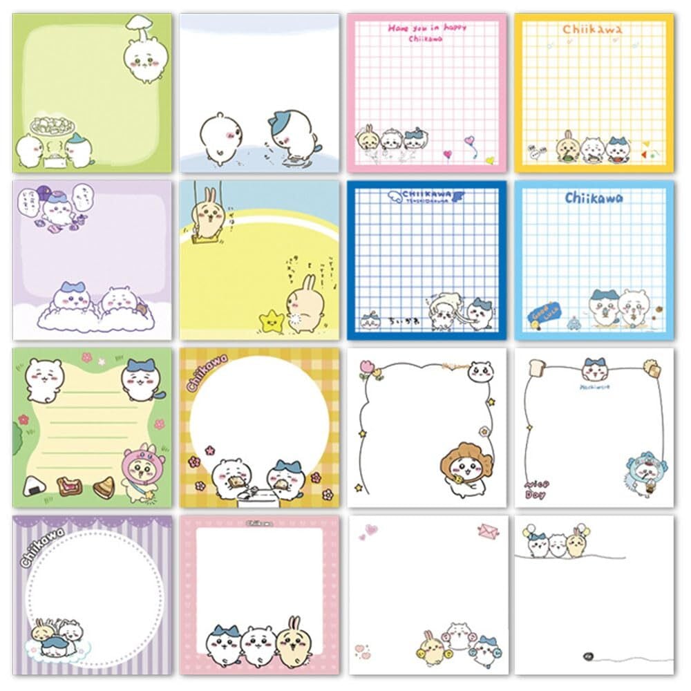 【特価商品】ハチワレ うさぎ ももんが 16冊×20枚 ふせん スクエア 粘着メモ かわいい メモ 手帳 書き込み ノートメモ用紙 付箋 文房具 メッセージシール キャラクター ホーム ちいかわ オフィス 学生, 縦7.5cm×横7.5cm