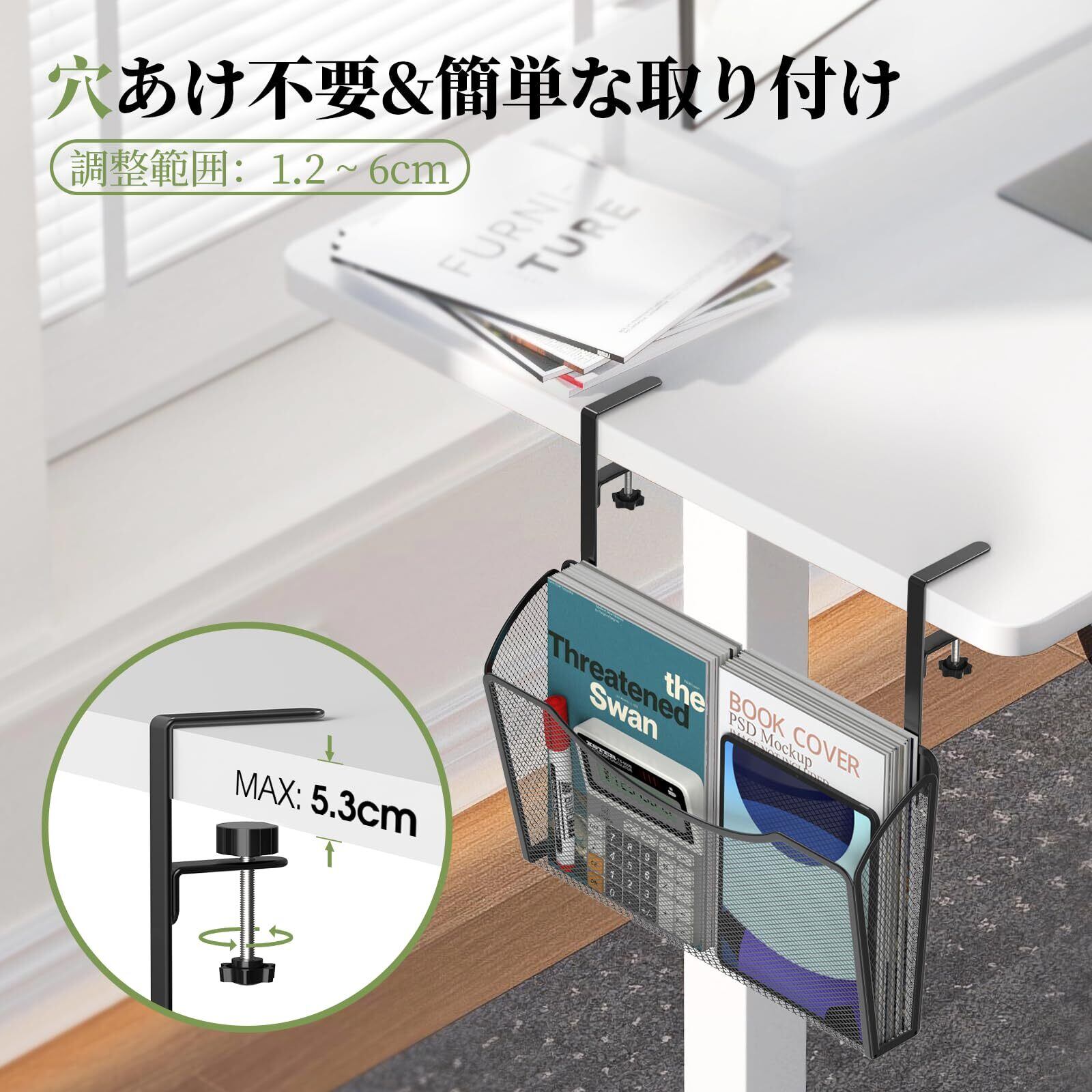 「様々な場合に適用」 軽量でありながらも頑丈な鋼線とメッシュ構造、傷がつきにくいブラックパウダーコート仕上げで、このテーブル下のハンギングオーガナイザーはさまざまな家庭、学校、オフィスの環境で長持ちします。