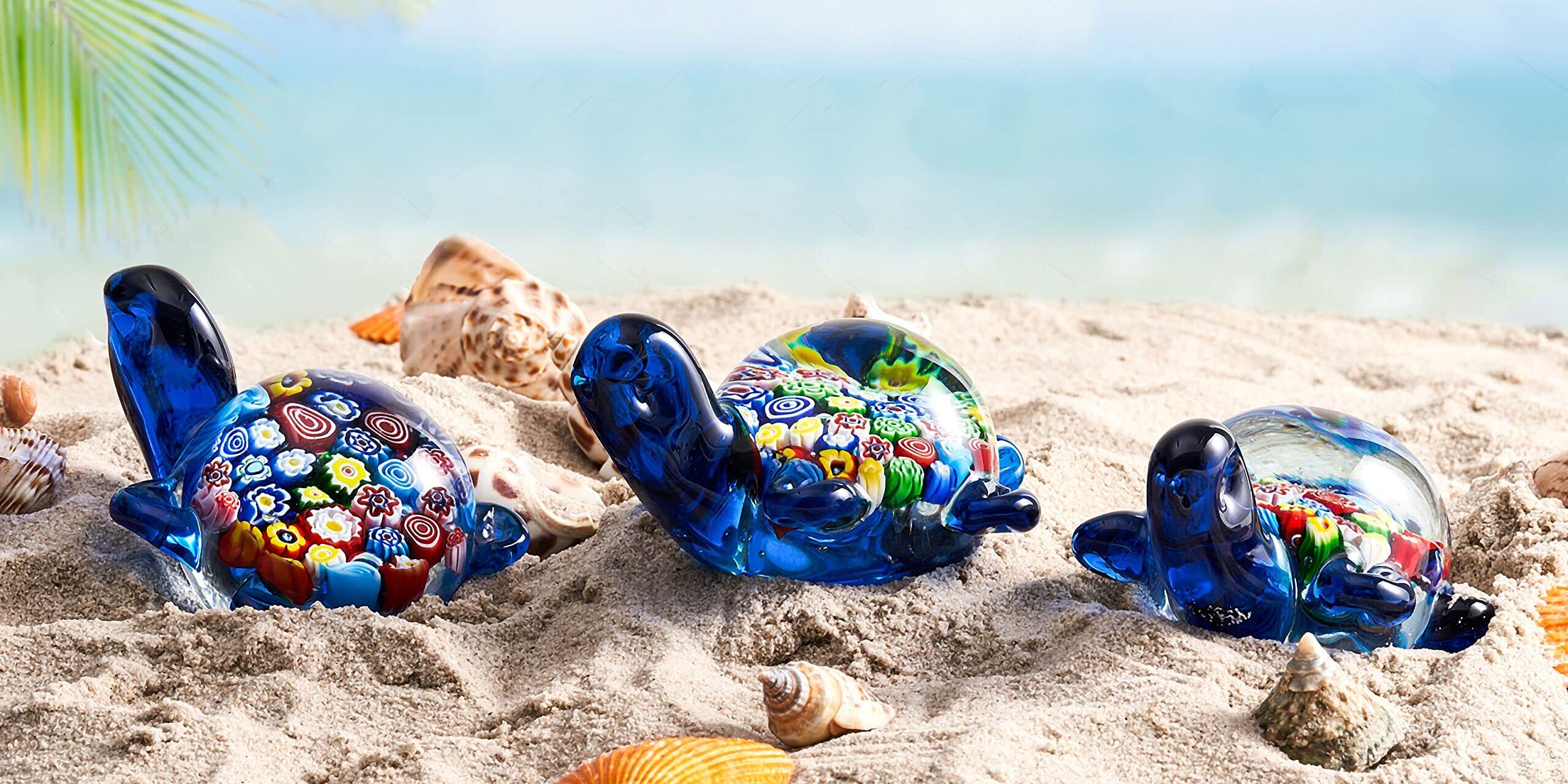 効果: かすんだ遠近効果は非常に装飾性に富んでいます。 アートガラスに手作業で染色し、手作りの温もりを感じてください。 シンプルなウミガメの形、ユニークな個性。手作りのガラス像はどれもユニークで、形状がわずかに異なり、バブルの装飾効果があります。