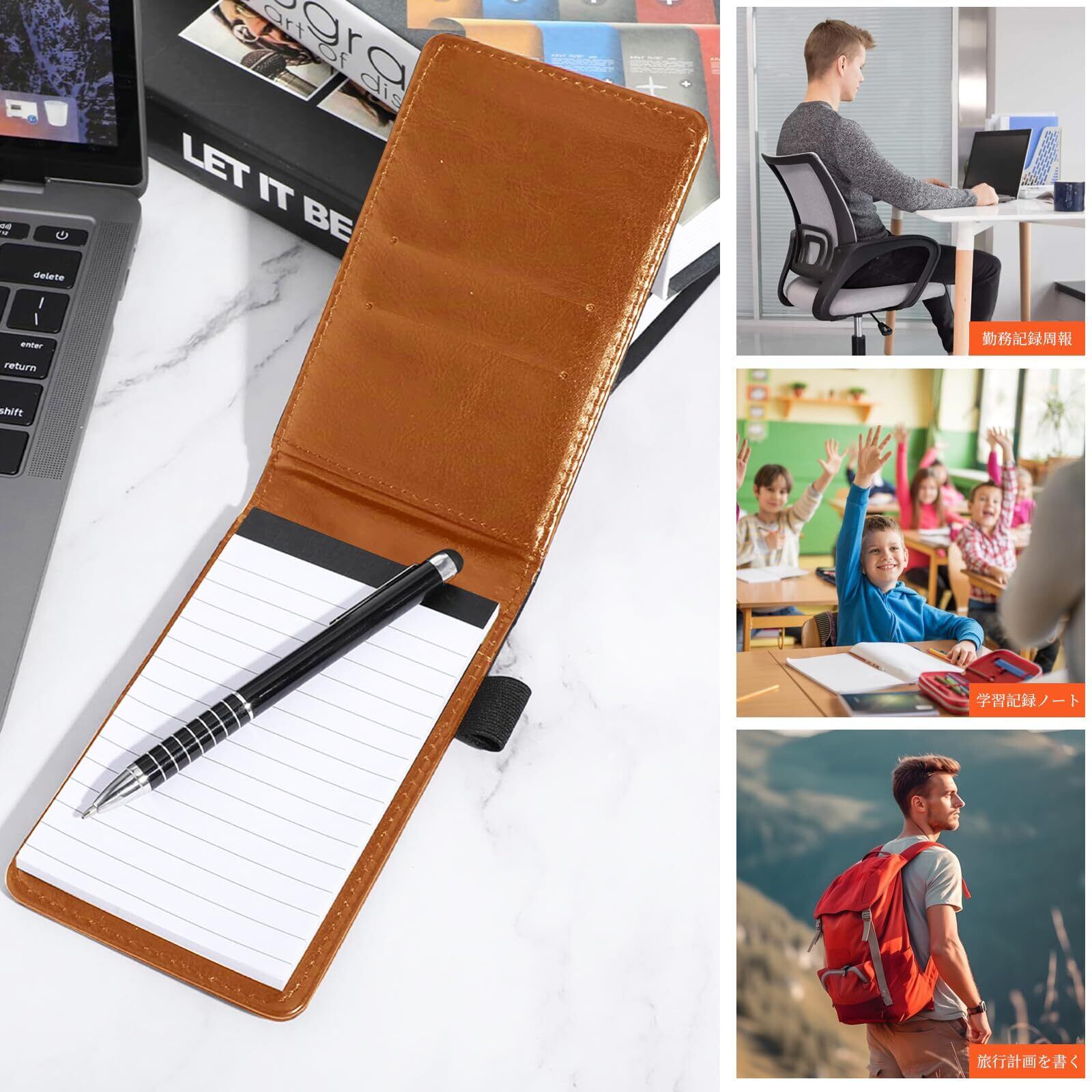 【多機能デザイン】A7サイズのスリムで軽量なデザインは、ブリーフケースに入れたり、持ち運んだりしやすく、迅速なメモ取りや商談での使用に適しており、付属のペンクリップとポケットデザインで実用性を高めています。