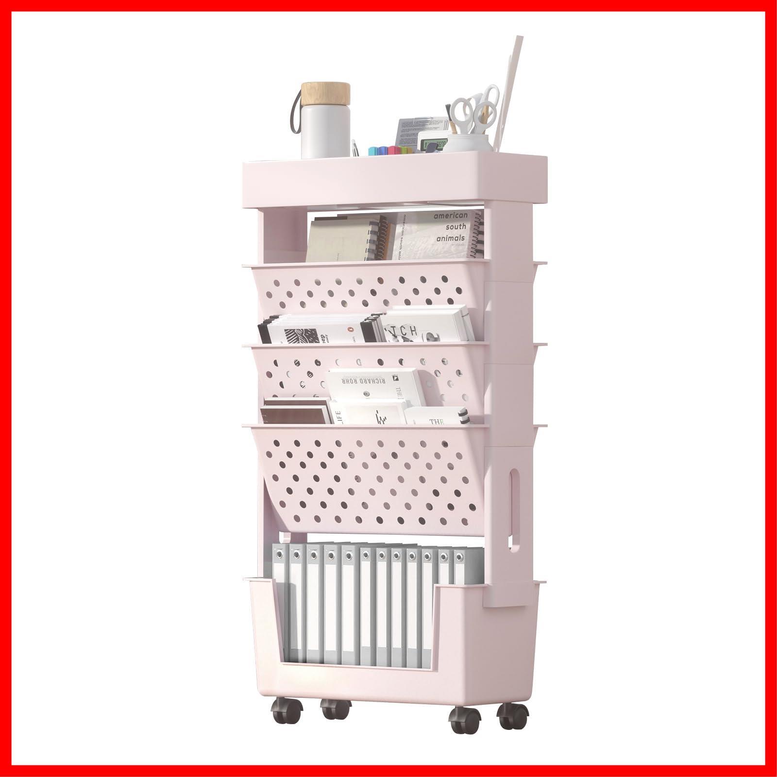 色:ピンクオフィス 勉強用品分類 教科書収納 日用品収納 組立簡単 文房具収納 教室隙間収納 省スペース 収納 教科書 収納ラック 収納ワゴン 日本語説明書付き 雑誌ラック キャスター付き キャスター付き 本棚 本棚 書類収納 プラスチック ピンク スリム 5段 大容量 ファイルワゴン マガジンラック LINECY