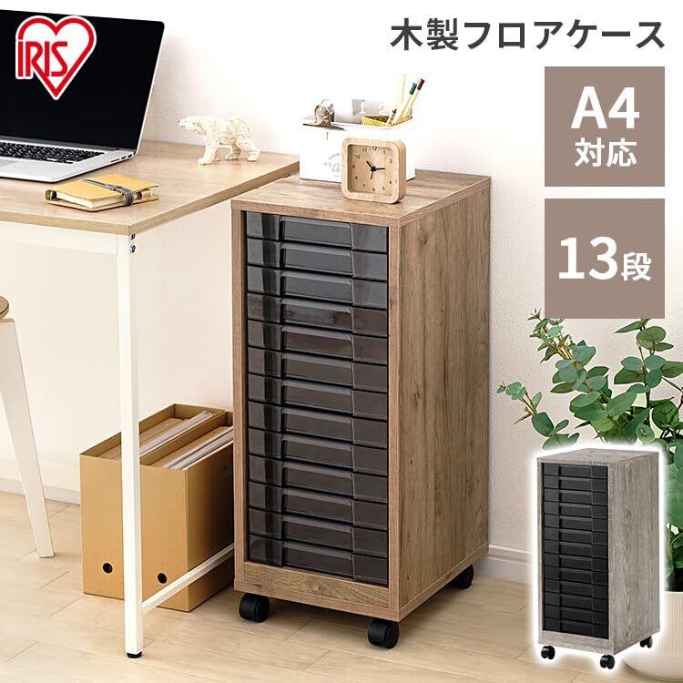 【浅型13段】 アイリスオーヤマ(IRIS OHYAMA) レターケース 木目 アッシュグレー/クリアブラック A4 書類ケース 木製フロアケース 収納 棚 ケース デスク収納 書類収納 レター 手紙 整理 整頓 収納 用紙 紙 小物 引き出し 事務用品 引出 書類整理MFE7130