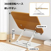 ブックスタンド 読書台 360度回転 書見台 ipadスタンド 学習用ブックホルダー 勉強グッズ 傾斜台 高さ・角度調整可能 折りたたみ 教科書 レシピ 木製台座 耐荷4KG EX-SPACE