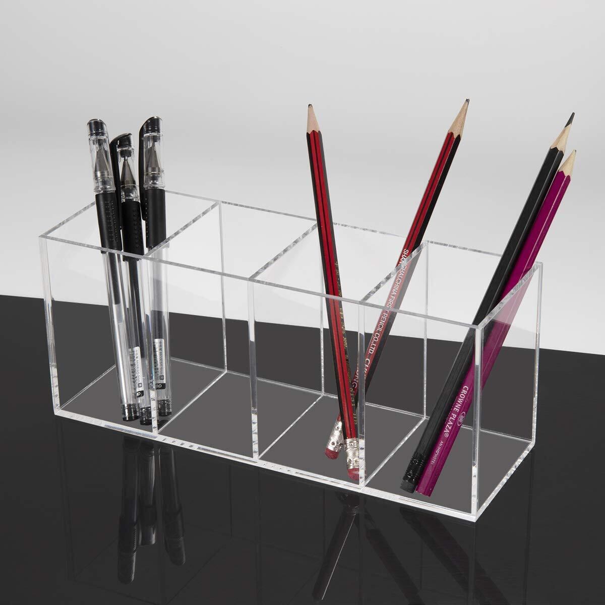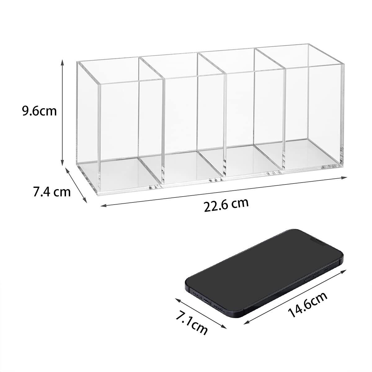 NIUBEE 大容量ペン立て 4格 仕切り 透明アクリル製 ペンスタンド 化粧品収納ボックス 卓上収納 文房具、メイクブラシなど小物入れ クリア