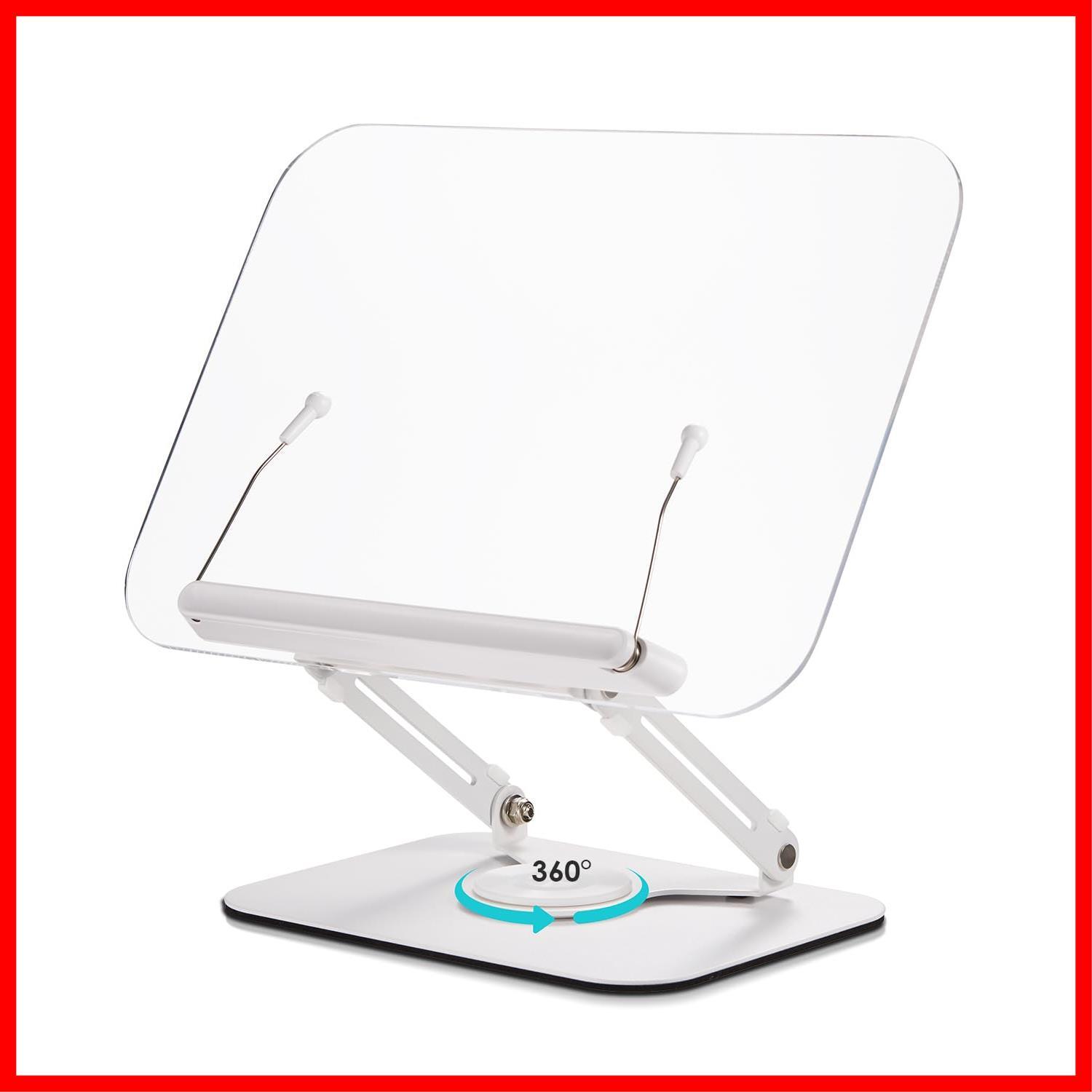 【特価商品】viozon アクリル製ブックスタンド 書見台 読書用、料理本ホルダー、筆記台 本立て、高さと角度調整可能、360°回転ベース、折りたたみ可能 持ち運び便利、軽い、オフィス、キッチン、学校の教科書、レシピ、雑誌、タブレット、ラップトップ