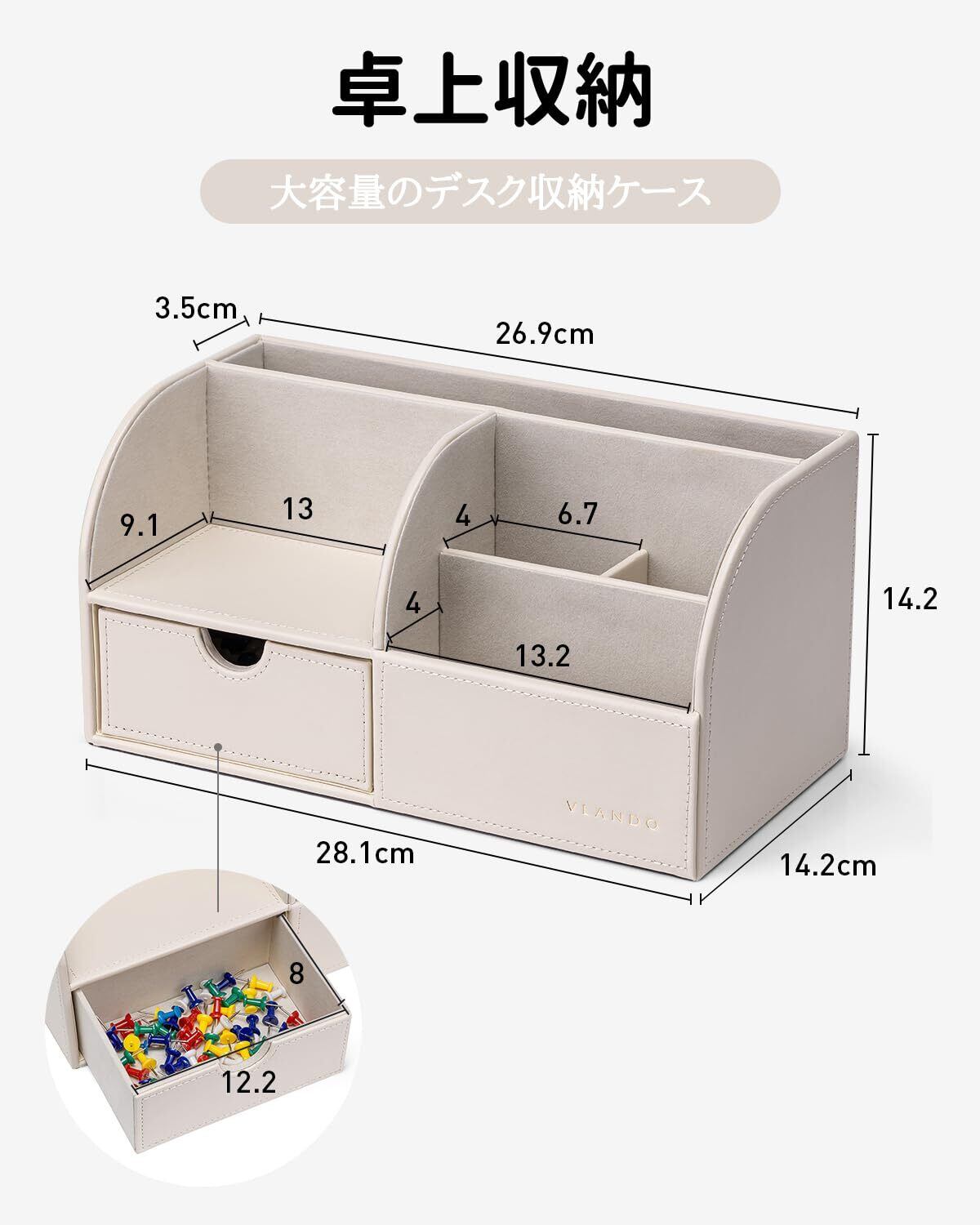 【小さいサイズと大容量】サイズ28.1*14.2*14.2cm 重さ0.82kg 。5つのコンパートメントと引き出しがあり、約ペン/鉛筆30本、雑誌2冊を入れることができ、一つだけでデスクを綺麗にします。