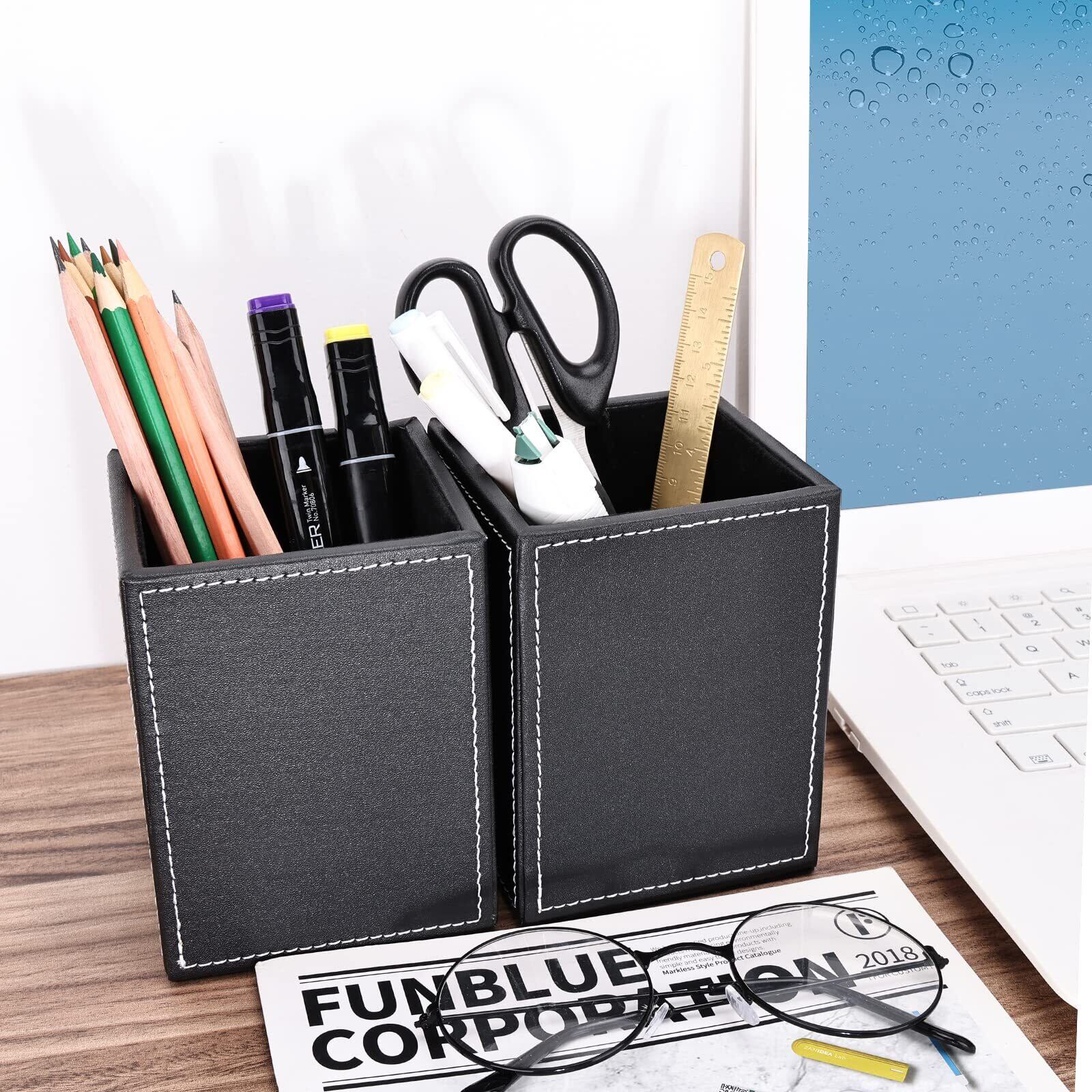 色:ブラック*2卓上収納 筆立て 鉛筆ホルダー 小物入れ ペンスタンド 文房具/メイクブラシ/メガネ収納ケース PUレザー製 鉛筆立て ペンホルダー おしゃれ ペンカップ ぺん入れ ペン立て 自宅 オフィス Richblue シンプル