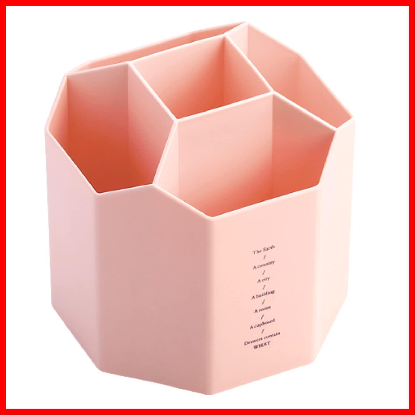 ハオハナ ペン立て 360度回転 ペンスタンド ペンホルダー 5仕切り 鉛筆立て 卓上収納 収納ホルダー 大容量 (ピンク)