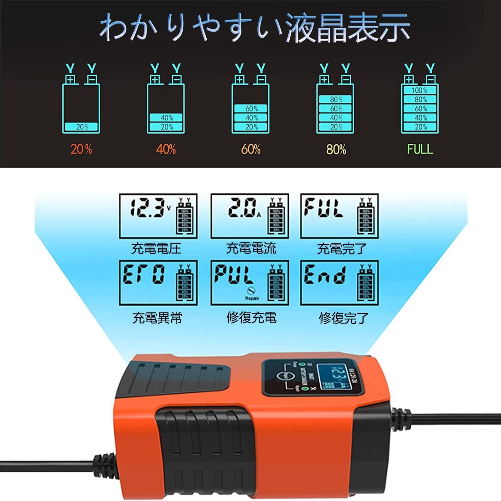 ★わかりやすい液晶表示★:充電電圧、充電電流、充電状況を表示されて、バッテリー充電量も確認てき、エラの場合も注意してくれて、簡単に把握できます。