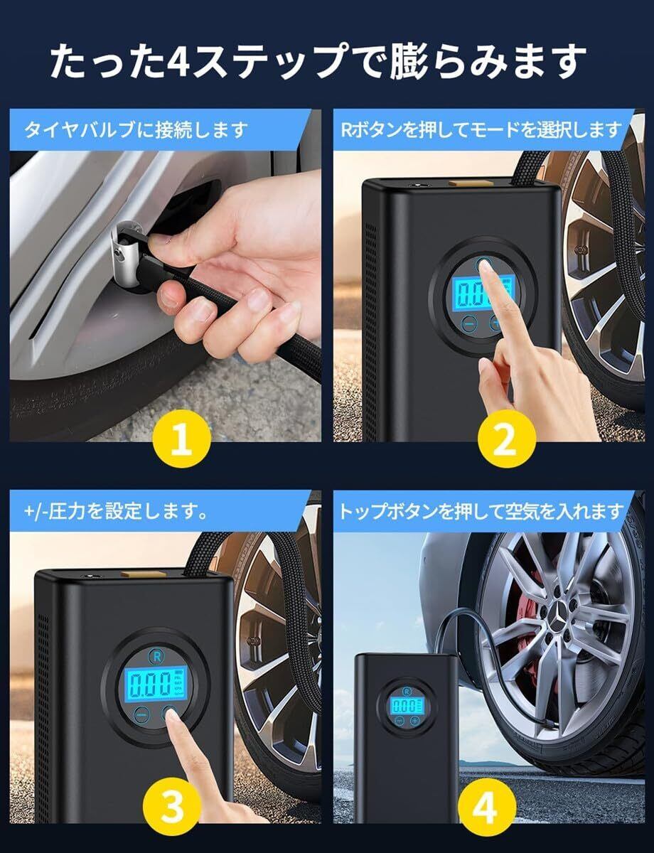 モデル:エアコンプレッサーバイク 車 用 スマート タイヤ 電動空気入れ コードレス 電動 エアーポンプ モバイルコンプレッサー 最大圧力150PSI ボール 自転車 浮き輪 バイク 電動空気入れ 空気入れ 3000mAh大容量 充電式 自動停止 エアコンプレッサー コードレス 電動エアポンプ 米式バルブ対応
