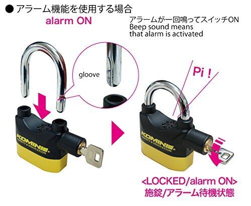 コミネ(KOMINE) バイク用 ピンタンブラー アラームパッドロック ブラック/イエロー LK-120
